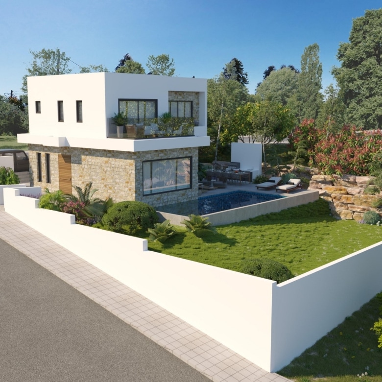 This project is placed in an ideal location. Blessed for the healthy climate that gives mild winters away from the sea winds and above humidity level. Locals say that people live longer in that area. The clear atmosphere contributes to the nice panoramic views of Paphos city. The houses in this project are designed for comfortable living, parties around the pool and guest facilities for your friends and family. The house, the view, the climate and the high standards of the project make it unique. It is a special project for special people.