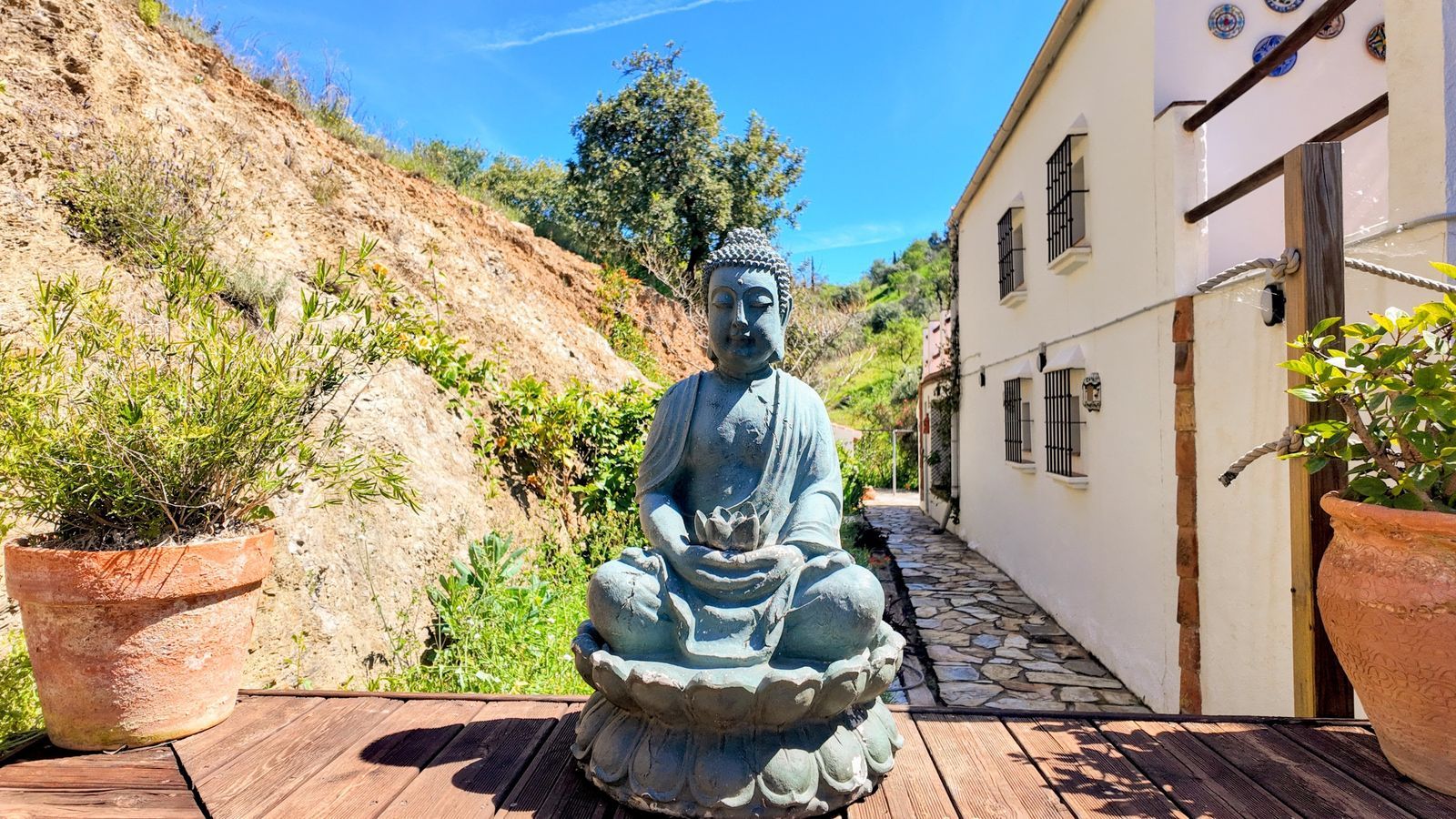 Outside you have at the back space for a pool in the orchard area, there is a converted almacén that now has a living room, 2 bedrooms, a bathroom and a laundry area. Great opportunities here for family, to rent out, run a business…