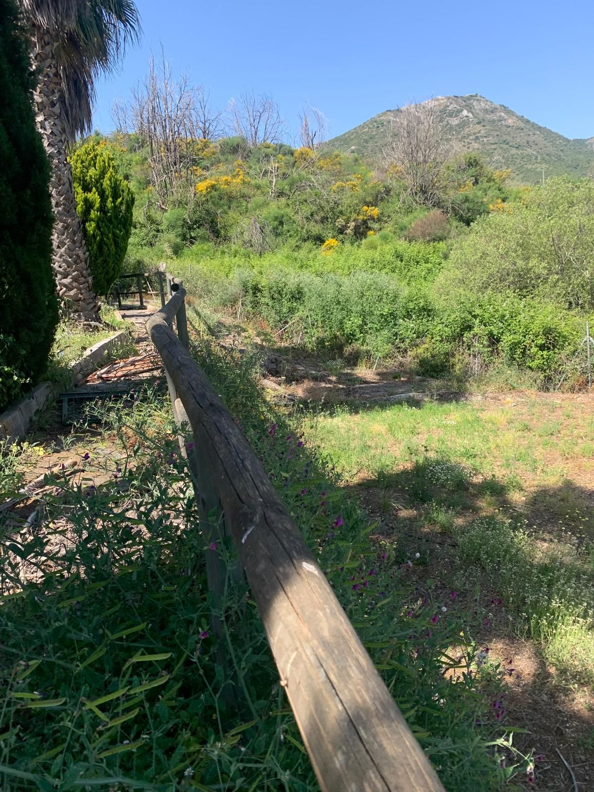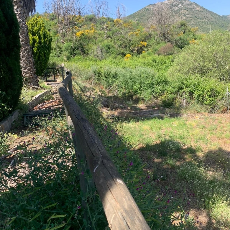 The property is located near the top of the urbanisation. You can enter the property which is fully fenced, either by a portal door or sliding electric gates, you have plenty of parking for at least 5 cars. You have several sitting areas and different spaces on the land to use as you wish and all mostly flat. To the left of the property you have a nice seating area with pergolas and outside kitchen with nice views to the valley and a small plunge pool. There are two entrances into the property, the main front door and a back entrance from the parking area into the hallway / kitchen.
