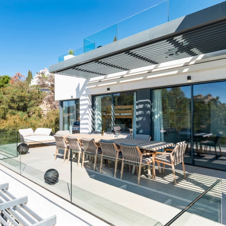 Villa for sale in El Madroñal, Benahavis with 7 bedrooms, 7 bathrooms, 6 en suite bathrooms, 2 toilets and with orientation south/west, with private swimming pool, private garage (5 parking spaces) and private garden. Regarding property dimensions, it has 1,165 m² built and 3,062 m² plot. Has the following facilities mountainside, air conditioning, fully fitted kitchen, utility room, fireplace, marble floors, jacuzzi, sauna, satellite tv, basement, guest room, storage room, gym, alarm, security entrance, double glazing, video entrance, dining room, barbeque, security service 24h, guest toilet, private terrace, living room, study room, separate apartment, country view, mountain view, indoor pool, heated pool, underfloor heating (throughout), automatic irrigation system, security shutters, dolby stereo surround system, laundry room, internet – wi-fi, covered terrace, electric blinds, fitted wardrobes, gated community, garden view, pool view, panoramic view, cinema room, wine cellar, close to golf, uncovered terrace, games room, separate dining room, balcony, spa, excellent condition, recently renovated / refurbished, ceiling heating system, underfloor cooling system, surveillance cameras, guest apartment, office room, individual a/c units, armored door, kitchenette, aerothermics and internet – fibre optic.