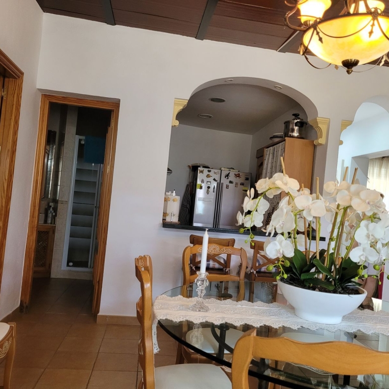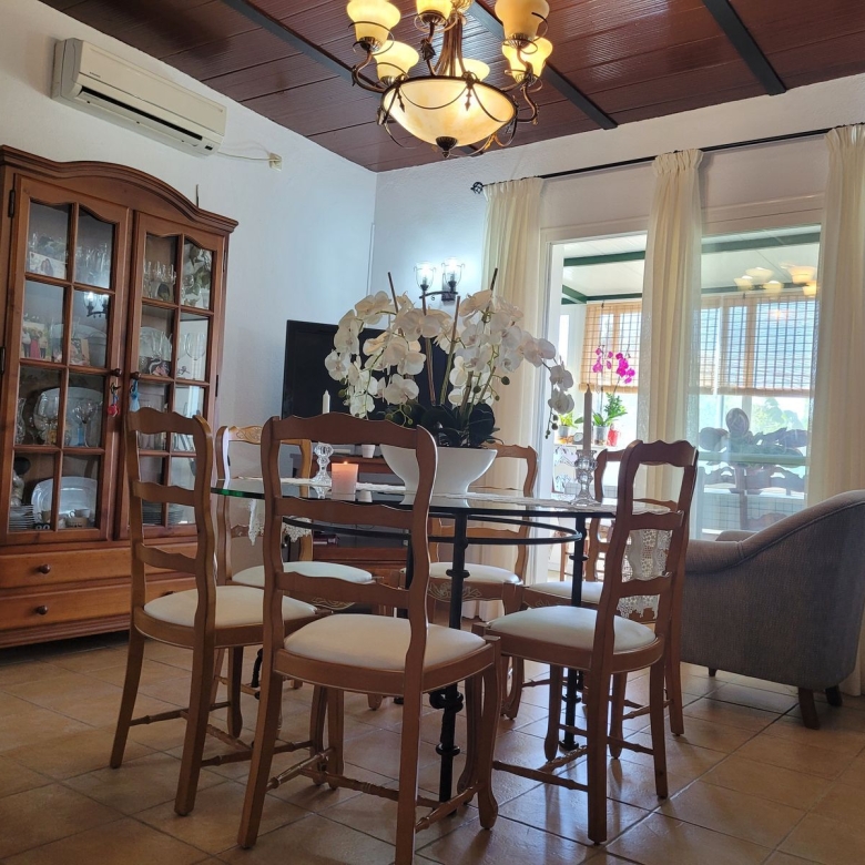 Villa of 1000 square meters, consists of two houses: the main house has four bedrooms and two bathrooms, private pool and garden, two porches, one closed with kitchen, barbecue area, appliances and living room.