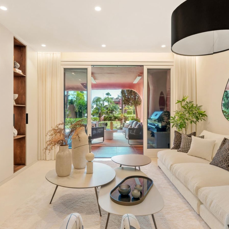 This villa is equipped with a state-of-the-art SieMatic kitchen, Gaggenau and Liebherr appliances, and Roche Bobois interior and exterior furniture. Cortizo windows and sliding doors, as well as Porcelanosa and Bisazza finishes, ensure a luxurious touch in every detail.