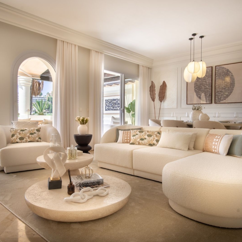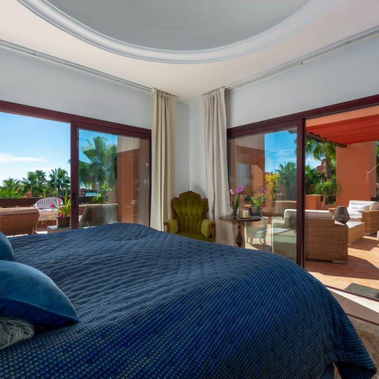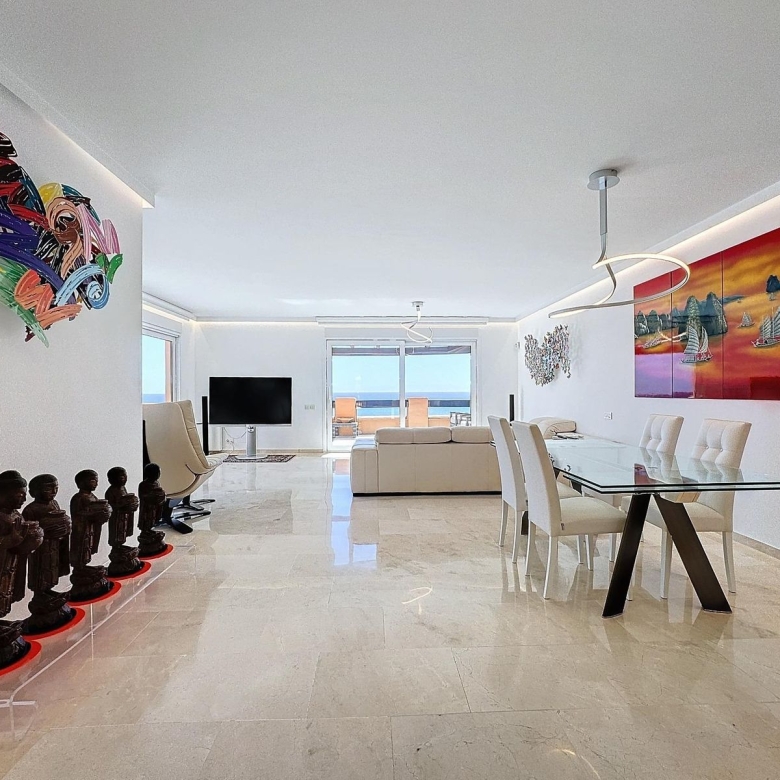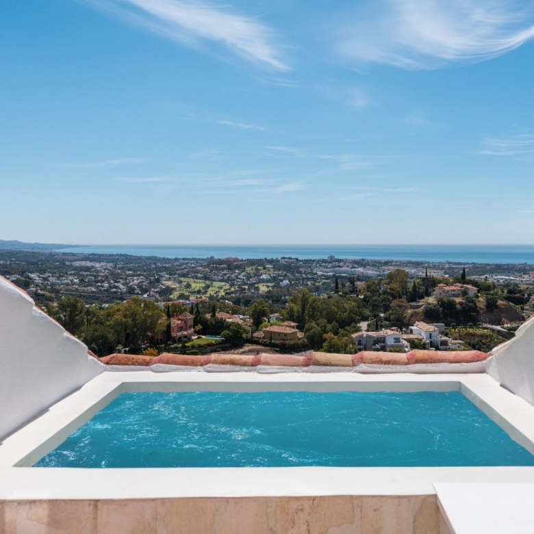 The property is divided into a main house with three bedrooms, six large terraces, and beautiful gardens.