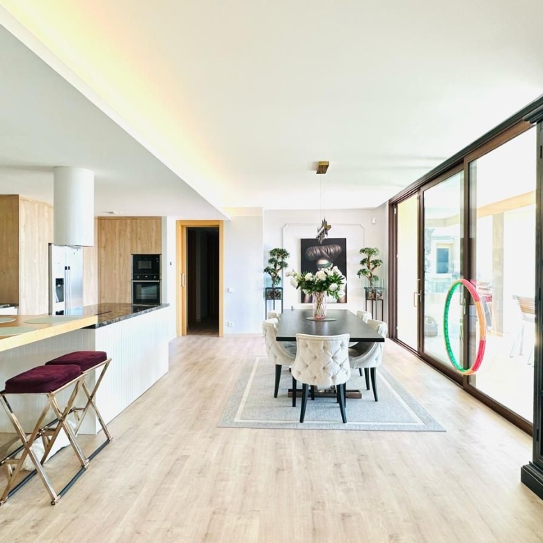 Upon entering the property, you are greeted by a majestic double-height entrance hall, flooded with natural light and framed by elegant architectural details. This leads into a beautifully proportioned living room, a cozy TV lounge with a fireplace, and a formal dining area — all seamlessly connected to the outdoor terraces and garden, allowing for effortless indoor-outdoor living.