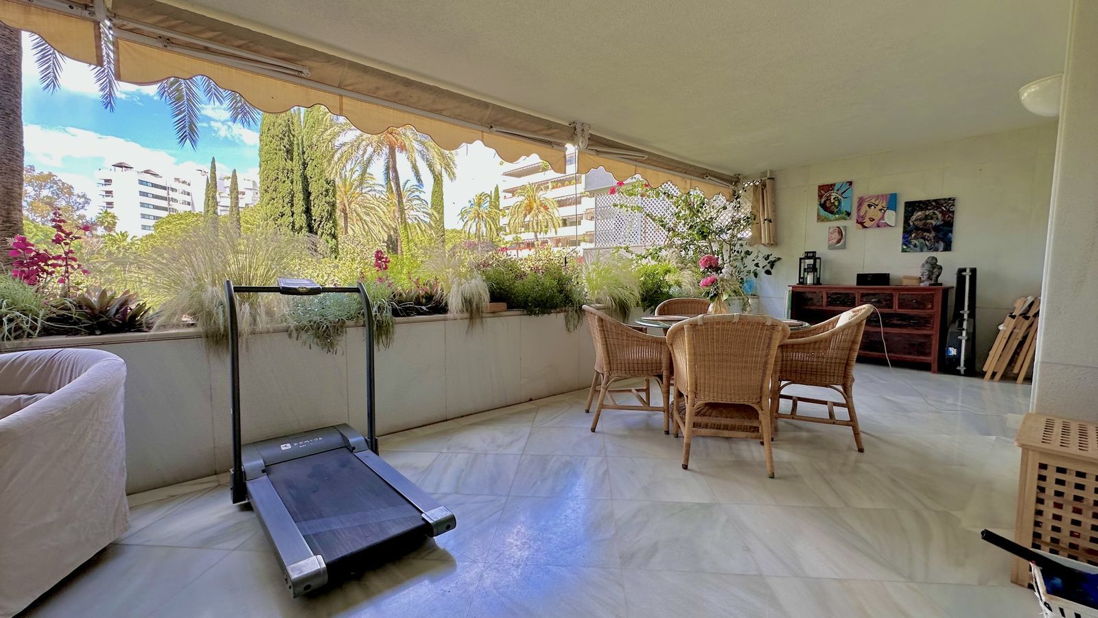 Distributed over 3 levels, this fabulous villa has 6 bedrooms, 6 super modern bathrooms and 2 toilets. It welcomes you into an impressive entrance hall with double-height ceiling, which leads to a large open-plan living area. The large, voguish living room is furnished with high-quality furniture and overlooks the subtropical garden. It is connected with an imposing dining area and a state-of-the-art sleek kitchen. The living and dining areas have direct access to the covered and uncovered terraces, with several chill-out and al fresco dining areas, and an infinity pool with a wow-factor. Upstairs, the villa welcomes you into spacious, serene bedrooms, overlooking the green carpets of Los Naranjos Golf. The lower level boasts an extra-large entertainment area with a TV room and the possibility to customize with more features.