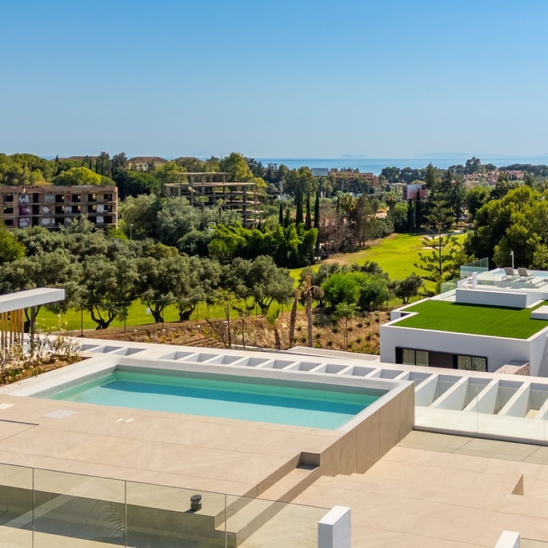 This outstanding property is a refined and soulful villa, thoughtfully crafted by renowned designers Puroform. Nestled in a prime location in Nueva Andalucía, this exquisite home perfectly blends sophisticated living with leisure and entertainment, offering a tranquil retreat in the heart of the Golf Valley.