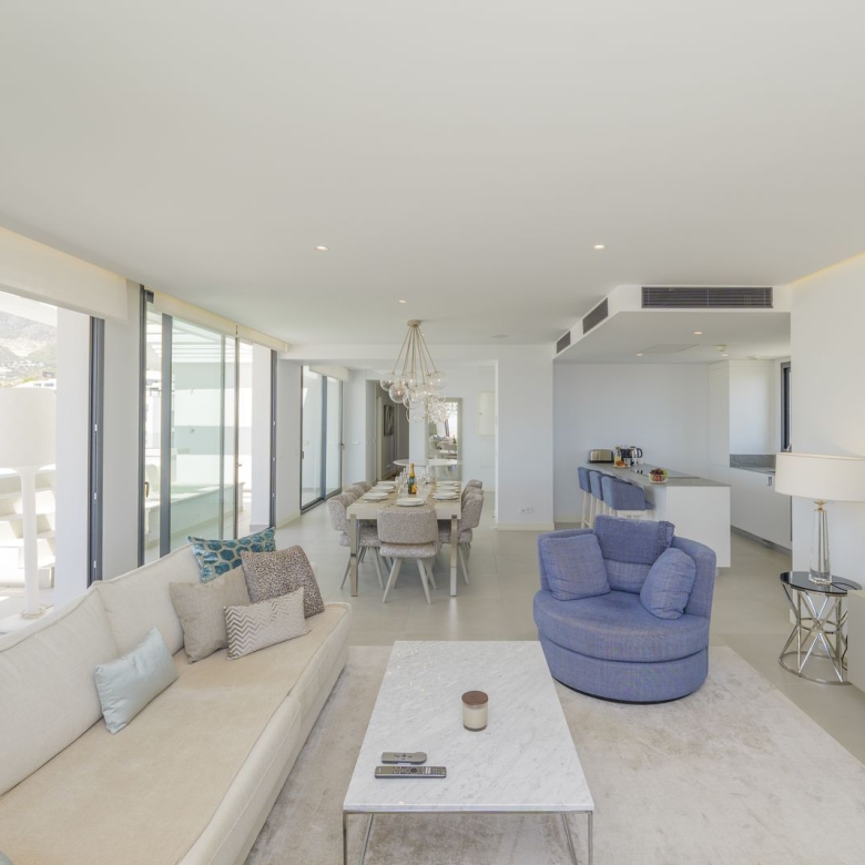 Located in the prestigious gated community of Sierra Blanca, Rossini 13 is a modern luxury villa offering unmatched privacy, security, and panoramic views of the Mediterranean, Gibraltar, and North Africa. Just minutes from Marbella’s Golden Mile, this smart home blends striking architecture with premium amenities.