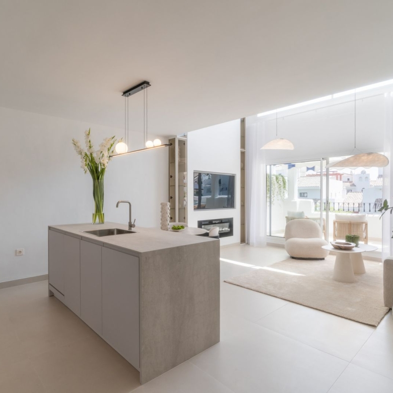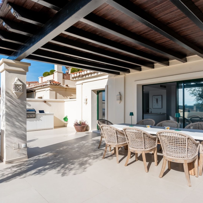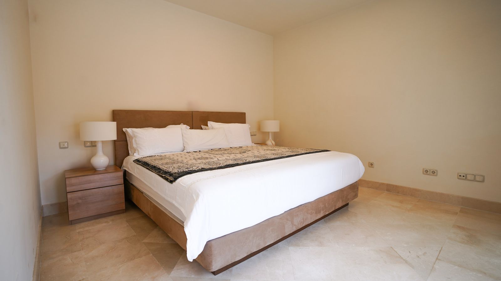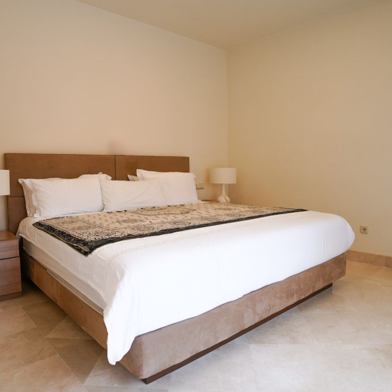 The first floor includes the large master suite, a sublime walk-in closet and large terrace with the fantastic sea views over Puerto Banus, office-sitting area and two spacious bedrooms in-suite.