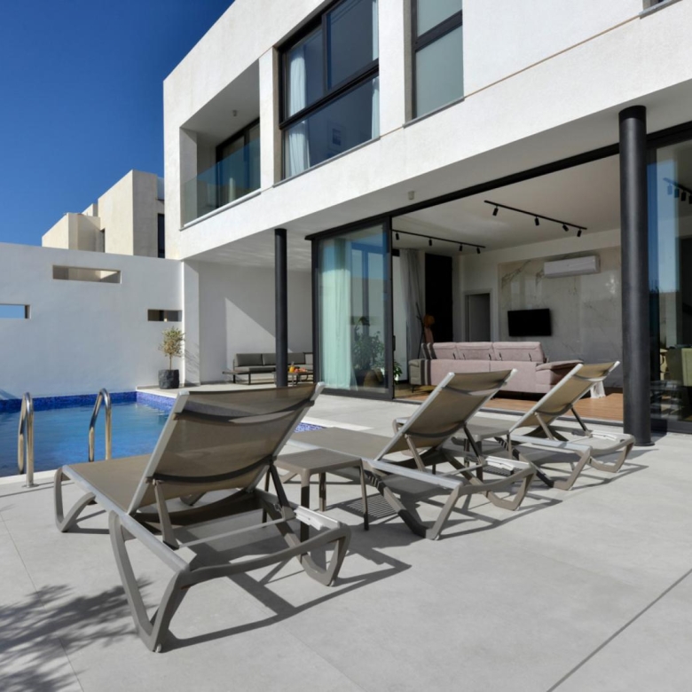 The Villa benefits from sea views allowing residents to enjoy the panorama of the eastern Mediterranean . The cleverly designed open plan kitchen, dining area and living room give the feeling of extra comfort and space. The house offers the 4th bedroom with bathroom on the lower level. The outdoor private swimming pool, barbecue area as well as the garden allow residents to fully take advantage of Cyprus’ almost year-round sunshine while maintaining their privacy.