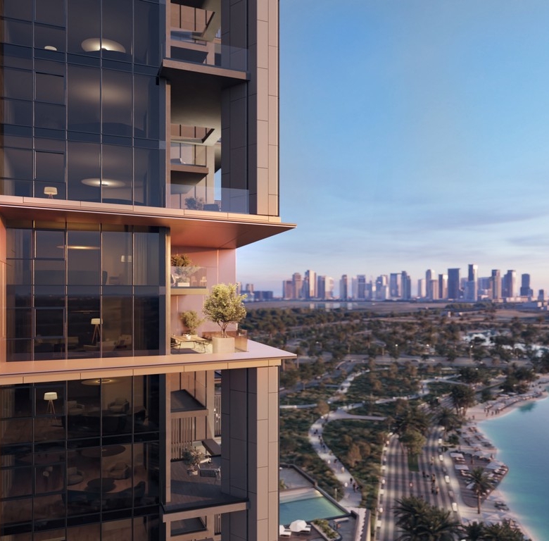 Balcony: Private outdoor spaces offering panoramic views of the Burj Khalifa and the Arabian Gulf.​