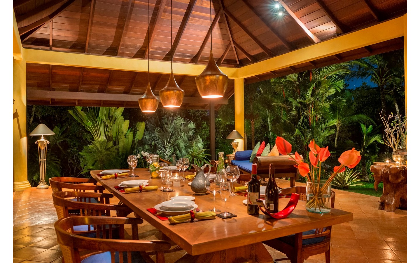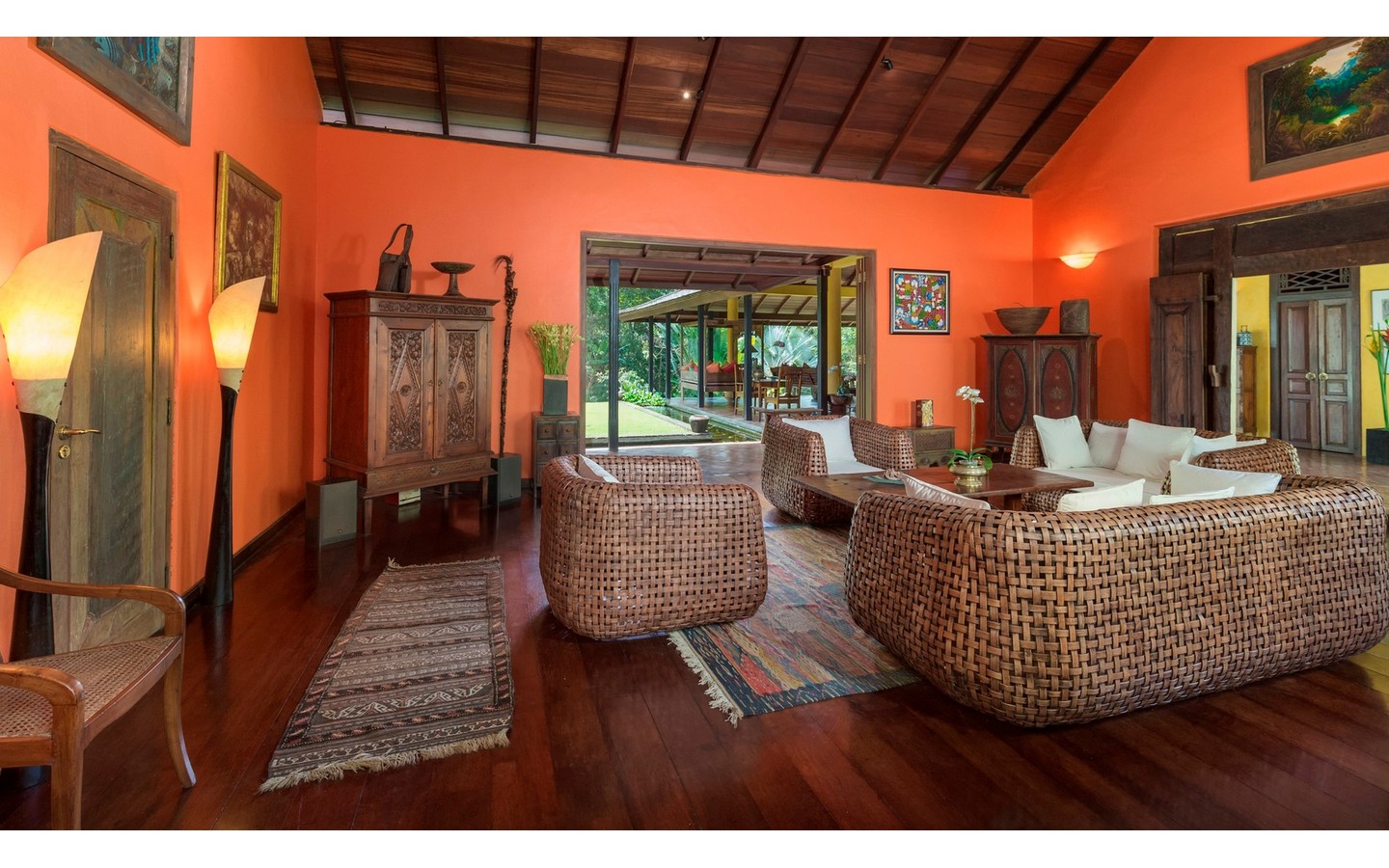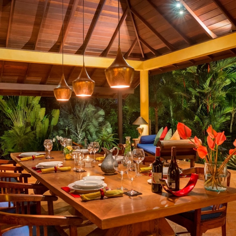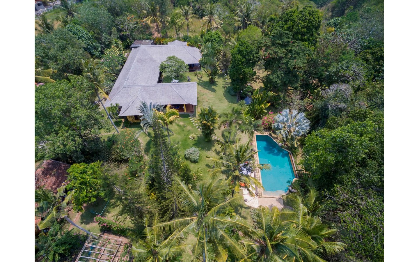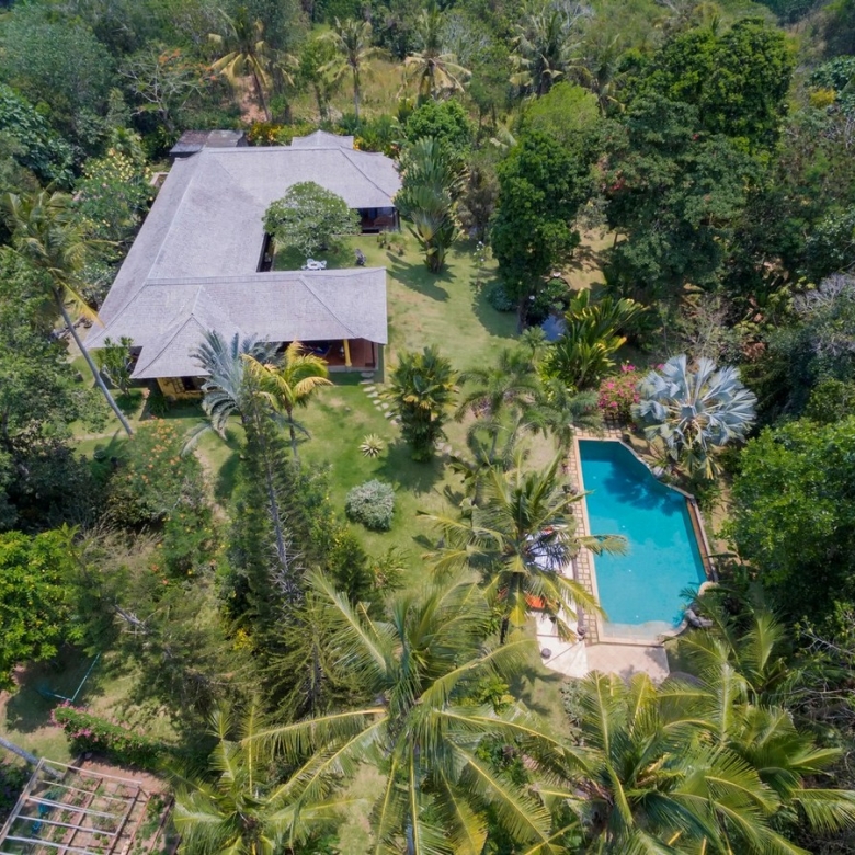 With its distinctive one-level design spanning approximately 450 sqm, set upon 7160 sqm of land, this villa offers a haven of tranquility amidst a verdant landscape. Featuring three bedrooms, each with its ensuite bathroom, and a secluded bungalow offering a fourth ensuite bedroom nestled within the tropical foliage, every aspect of this home invites relaxation and connection with nature.