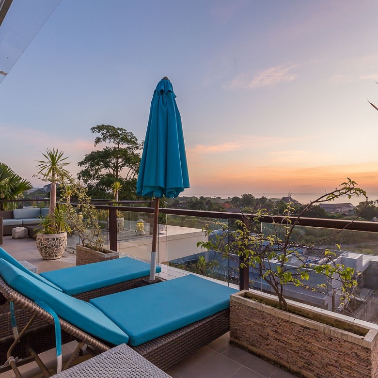 Discover your perfect sanctuary in the heart of Jimbaran, Bali. This exquisite freehold villa is ideally situated just 400 meters from the pristine Balangan Beach, 3.3 kilometers from the famous Labuan Sait Beach, and 3 kilometers from the prestigious New Kuta Golf Bali. Enjoy breath-taking ocean views from both the balcony and the rooftop terrace, making every moment a picturesque memory.