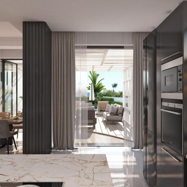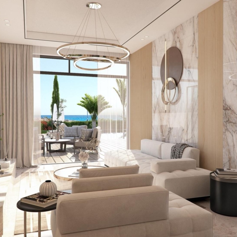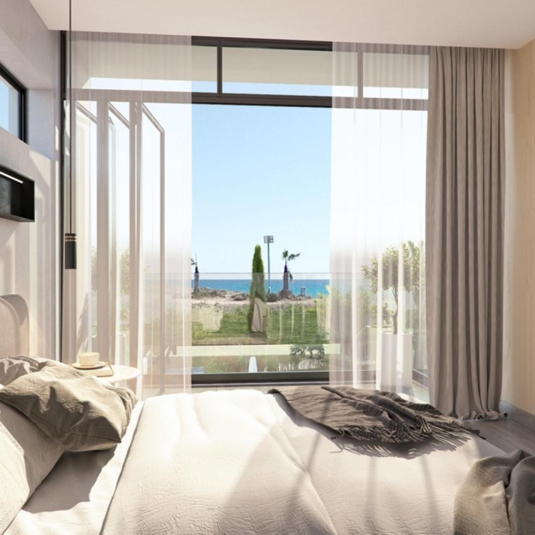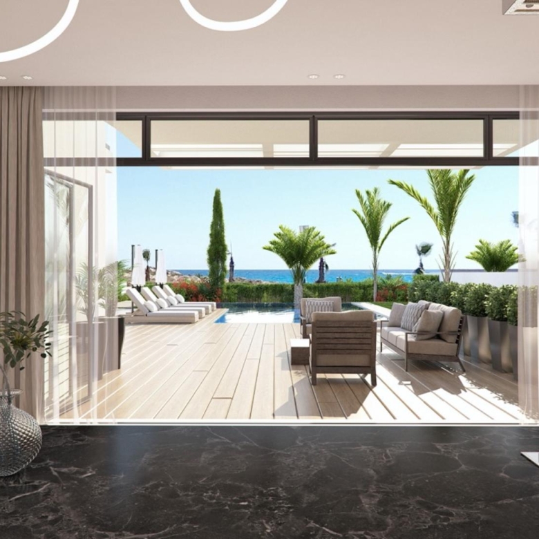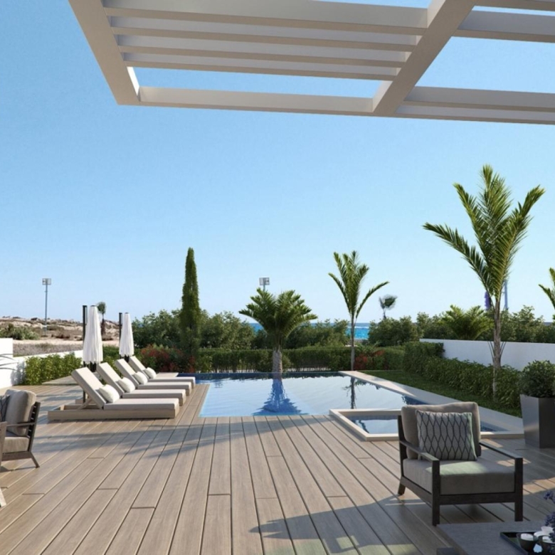 Discover coastal luxury at this exclusive beachfront villa in Ayia Napa. The lower floor offers a bedroom, bathroom, storage room, and a stylish living area. The ground floor features an open-plan kitchen, dining, and living room, plus a guest WC, outdoor deck, pool, jacuzzi, and lounge with sea views. On the first floor, three ensuite bedrooms provide privacy and comfort. The top floor showcases a rooftop garden with a barbecue area, jacuzzi, and WC for ultimate relaxation. An elevator connects all floors, and each villa includes parking for two cars. Experience the epitome of beachfront living, where luxury meets the beauty of the sea.