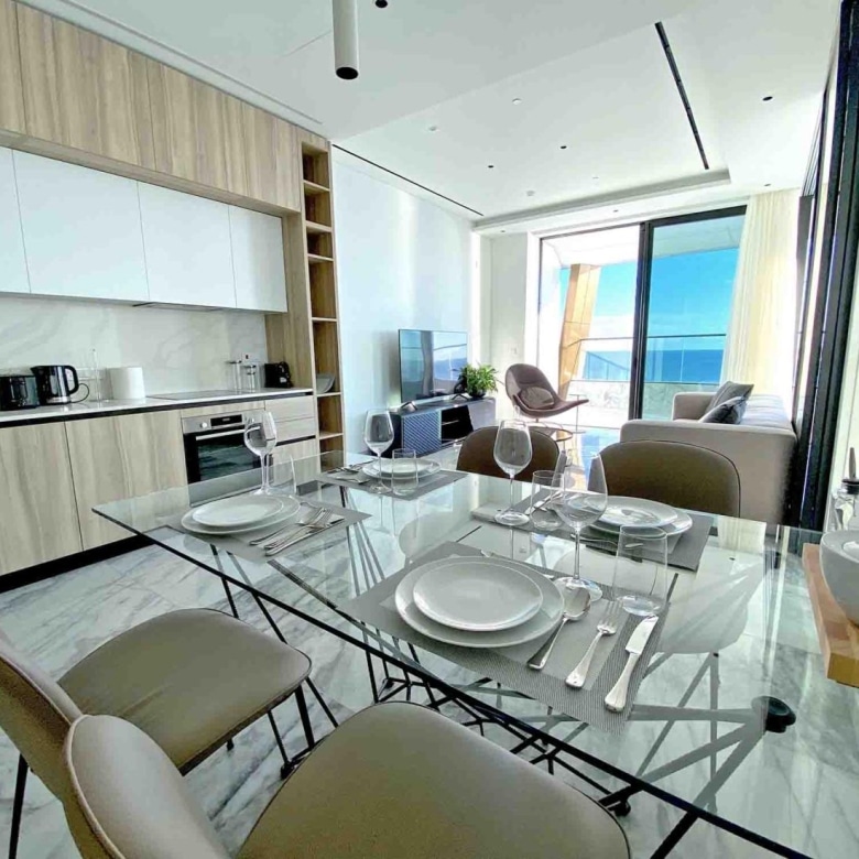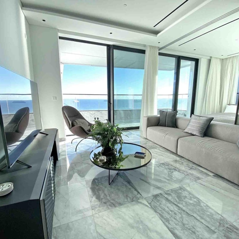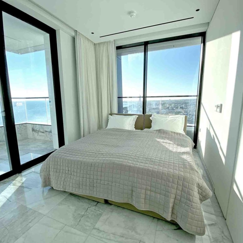 Luxury two bedroom apartment of an exclusive 21 floor residential building with exciting 5-star hotel facilities and services. Located in the centre of Limassol’s coastline in Cyprus. The building consists apartments all designed and positioned to offer breathtaking sea views of the Mediterranean Sea from all areas of the residences. This apartment enjoys the privilege of being on the corner of the 17th floor ensuring breathtaking sea and city view. Luxury furniture, electrical appliances, decorations and equipment are included in the price.