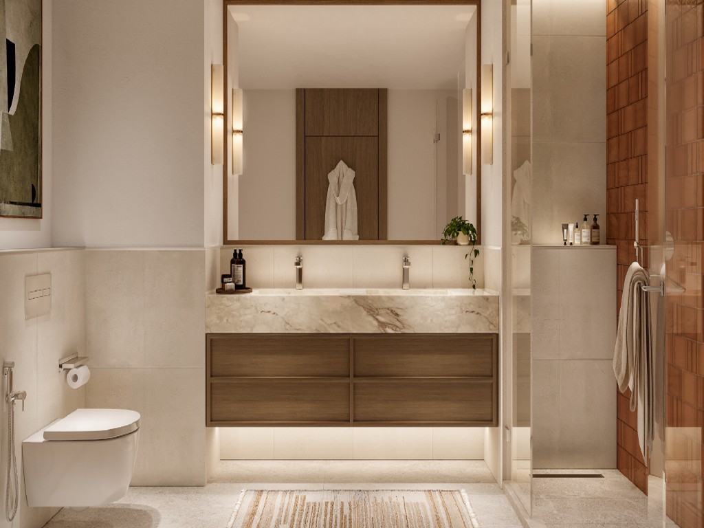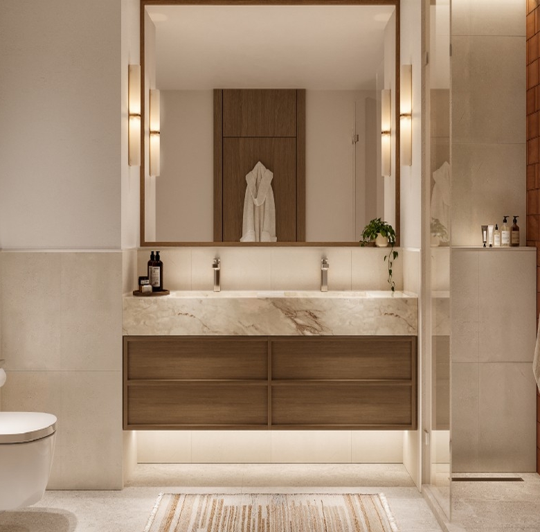 • Bathrooms: Modern and elegant, with high-end finishes and ample storage