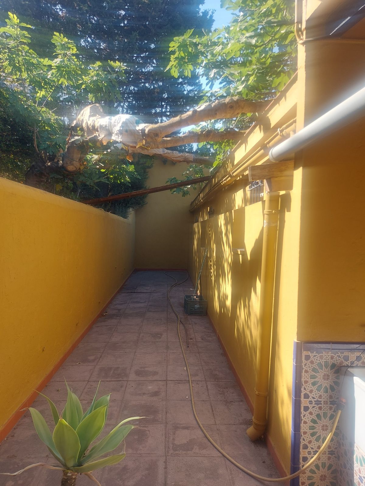 Ground floor: Entrance hall, office, large kitchen with fireplace and wood oven, two living rooms, both with fireplaces, large dining area and one bathroom. There are two interior courtyards.
