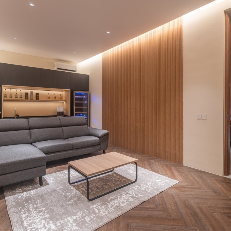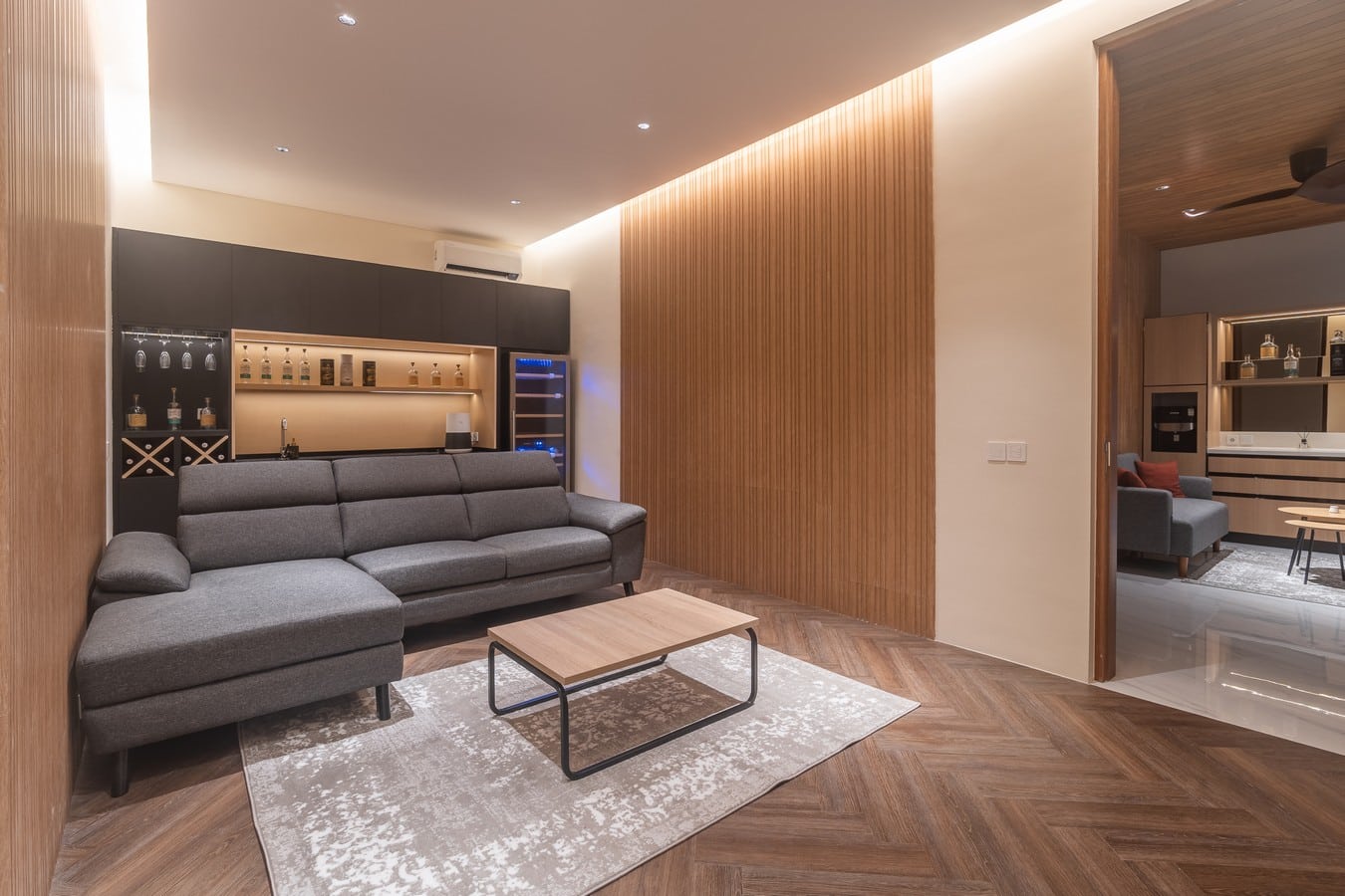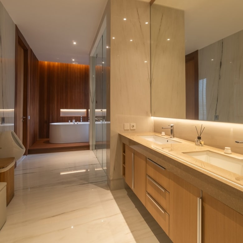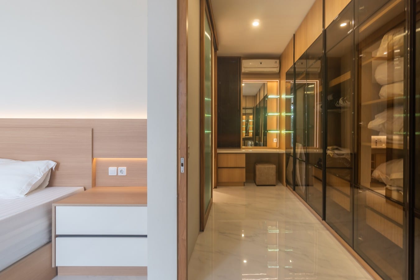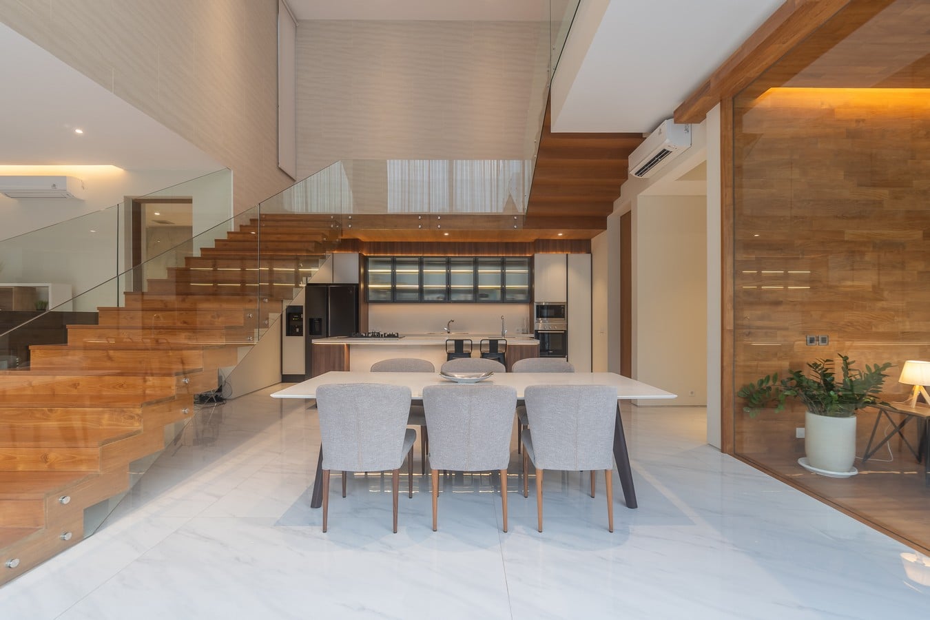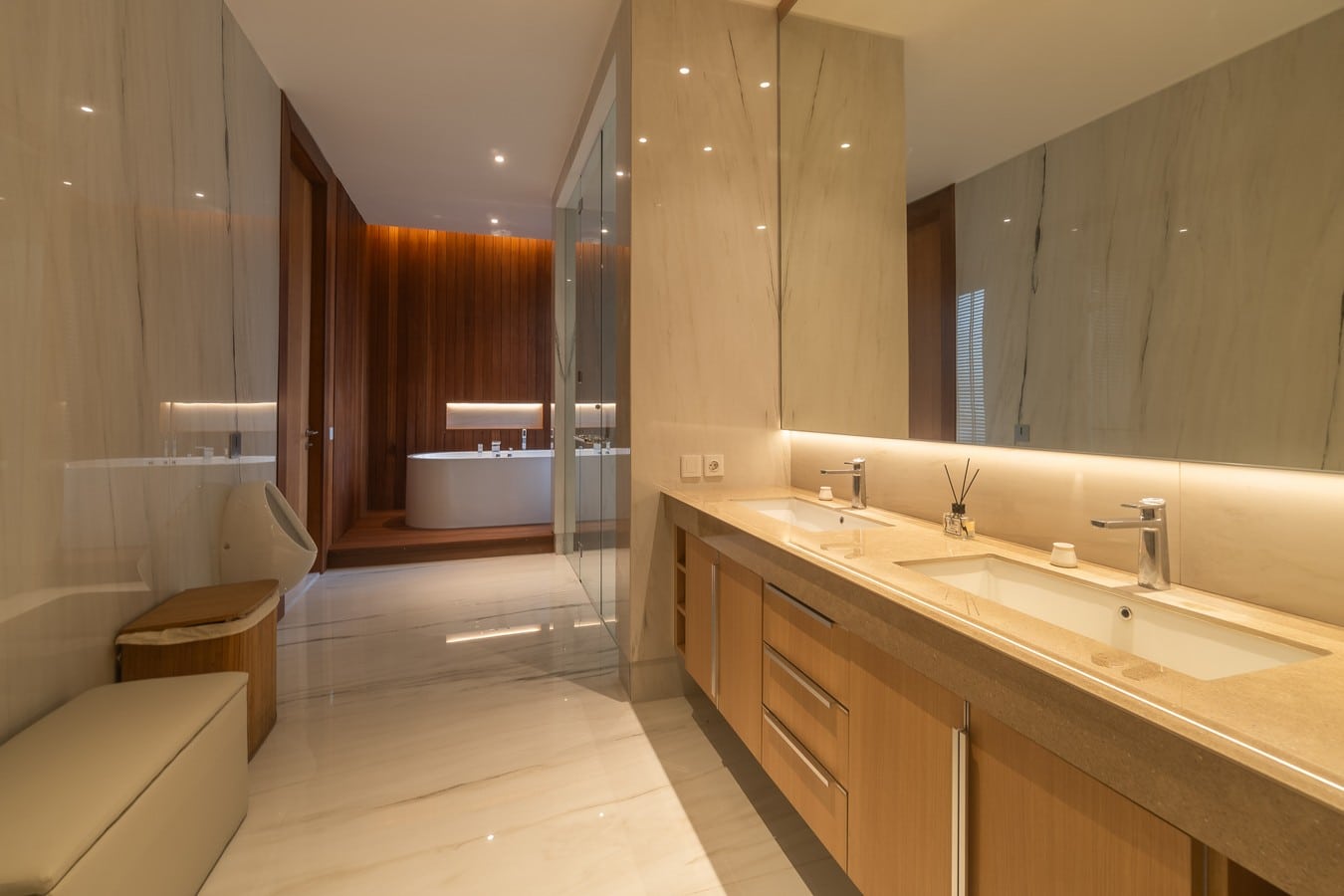 The villa exemplifies modern international design principles with its volumetric, minimalistic architecture and warm, welcoming atmosphere. It comprises four bedrooms, each with an ensuite bathroom, a main bedroom featuring a bath, three shower bathrooms, powder rooms, a Nook mini lounge adorned with teak wood, and a Metric open kitchen with a luxurious marble island. Moreover, the villa includes modern dining and living areas furnished with Cellini’s handpicked furniture and an 18-meter pool with sunken seating.