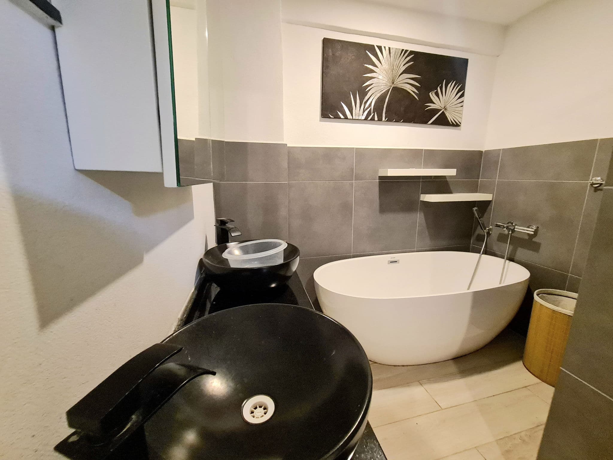 Floor type: Glossy ceramic tiles throughout