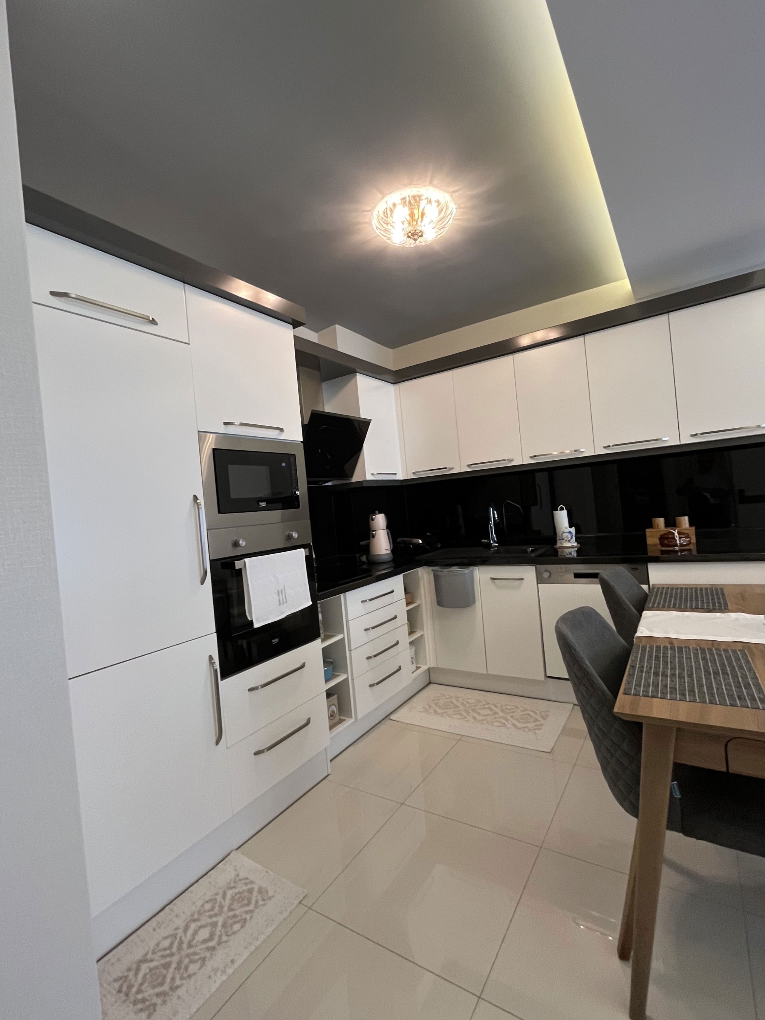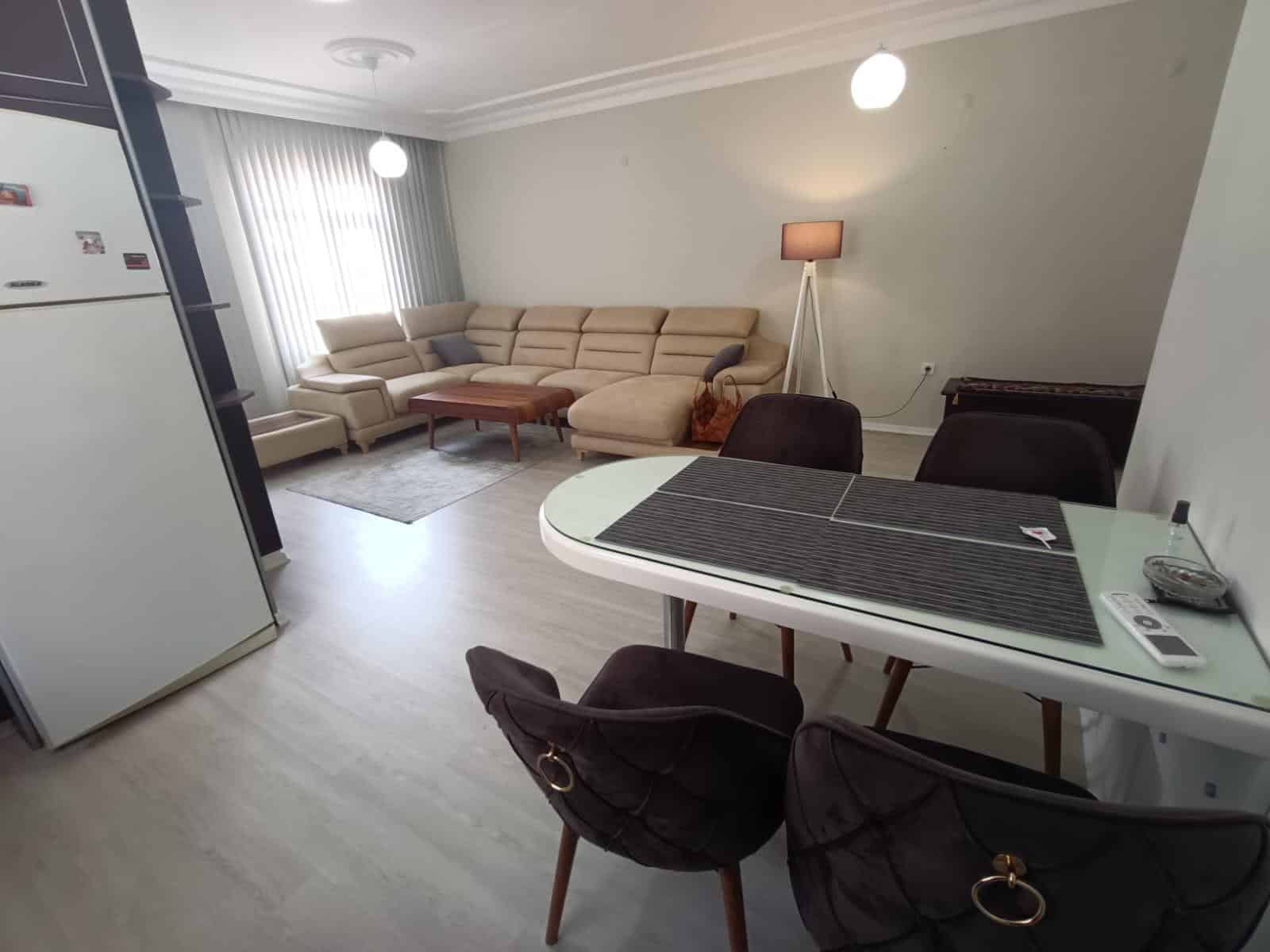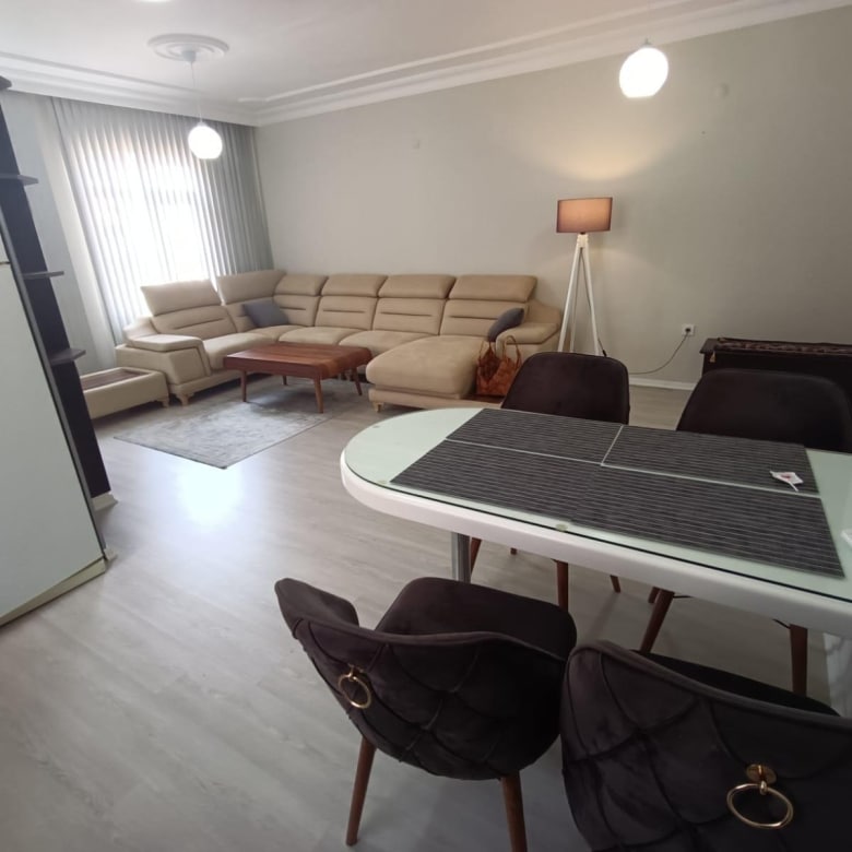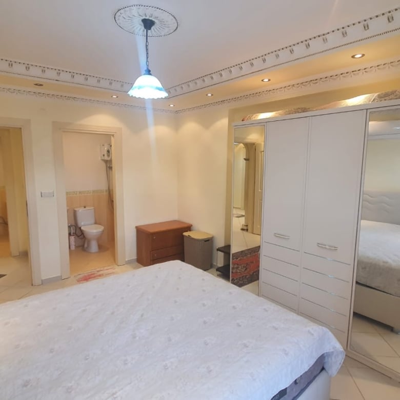 Thisfully furnished apartment in Alanya offerspool views from its private balcony, where you’ll find a comfortable lounge set and outdoor dining table. The interiors are tastefully decorated with modern finishes, creating a bright and comfortable living space.