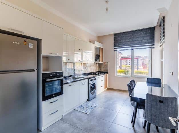 Located just 350 meters from the beach, this fully furnished 2-bedroom apartment sits on the 9th floor of a modern residential complex with two blocks. Offering a blend of sea and city views, the apartment is ready for immediate move-in and is suitable for obtaining a residence permit in Turkey.