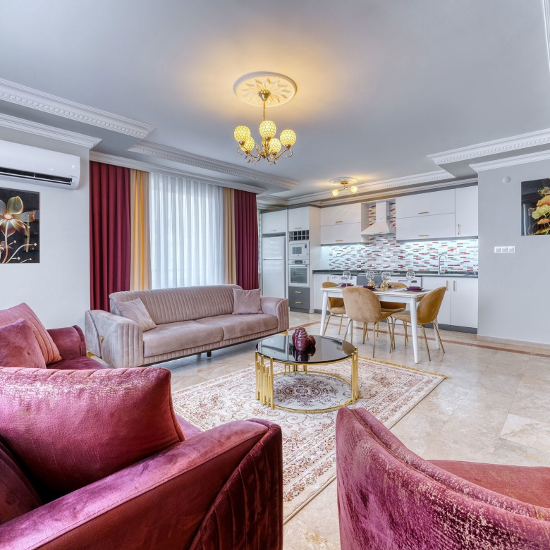 The apartment comesfully furnished, includingwhite goodsand anelectric water heater, withcity and complex views. It’s positioned approximately11 km from Alanya city centerand35 km from the airport, making it a highly accessible location.