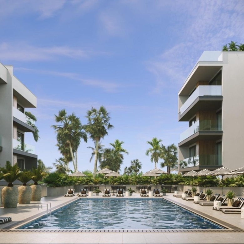 This is an upcoming gated development comprising of three block of flats with 1, 2 and 3 bedroom units with modern style. The complex includes a communal pool, fully equipped gym with changing rooms, outdoor BBQ point, and many more. Flats with nice sea and mountain views with suspended ceilings for concealing the A/C units and massive balconies, granite counters and soft closing kitchen cabinets together with floor to ceiling bedroom wardrobes add extra comfort and luxury feeling.