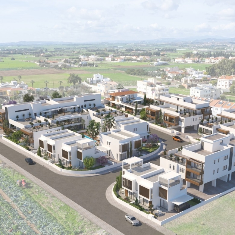 A new concept is coming to life in Kiti area, Larnaca! Combining apartments and luxurious villas, the project also includes a swimming pool and a kids playground! This unit has a garden area of 18.5 square meters.
