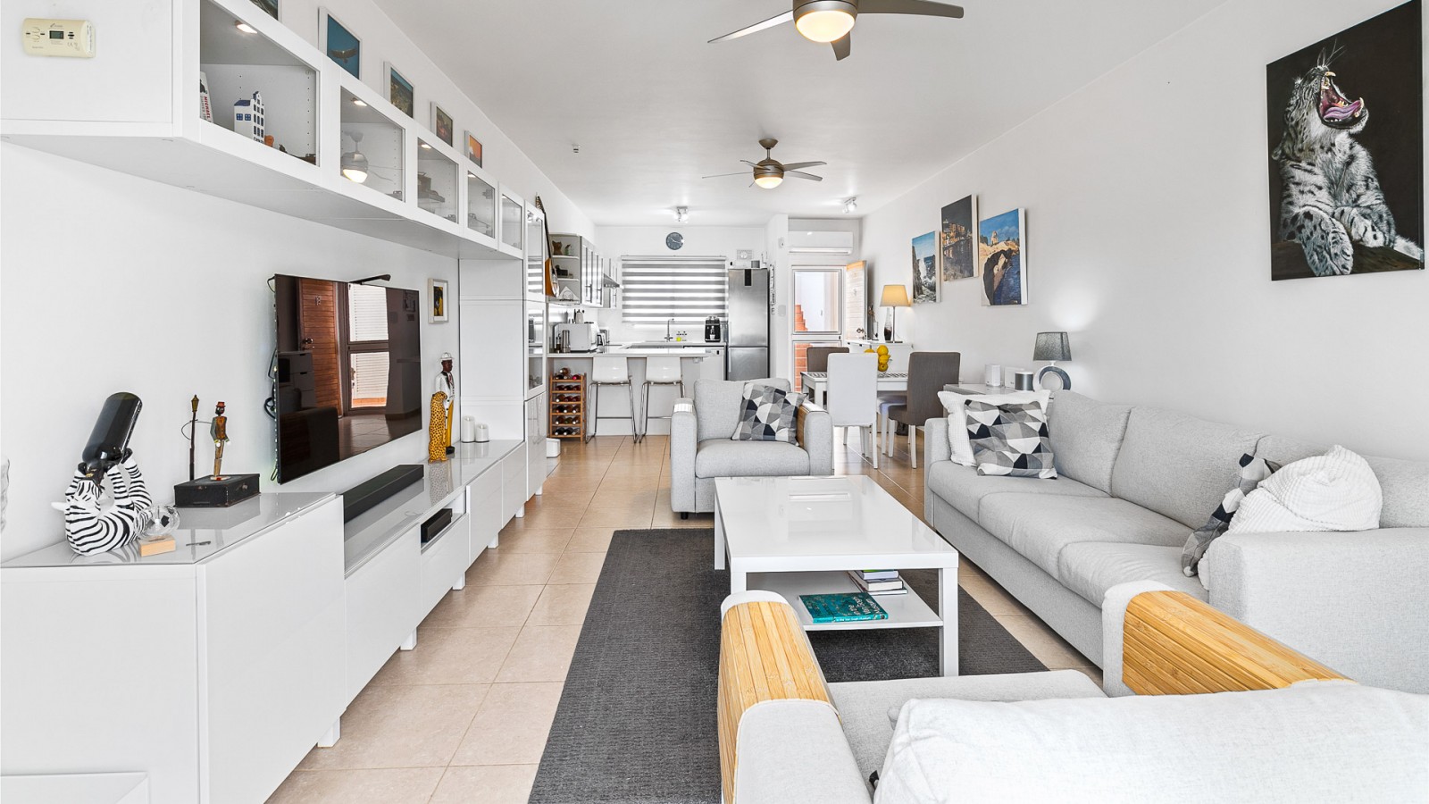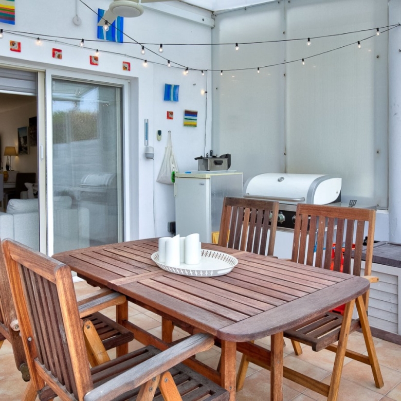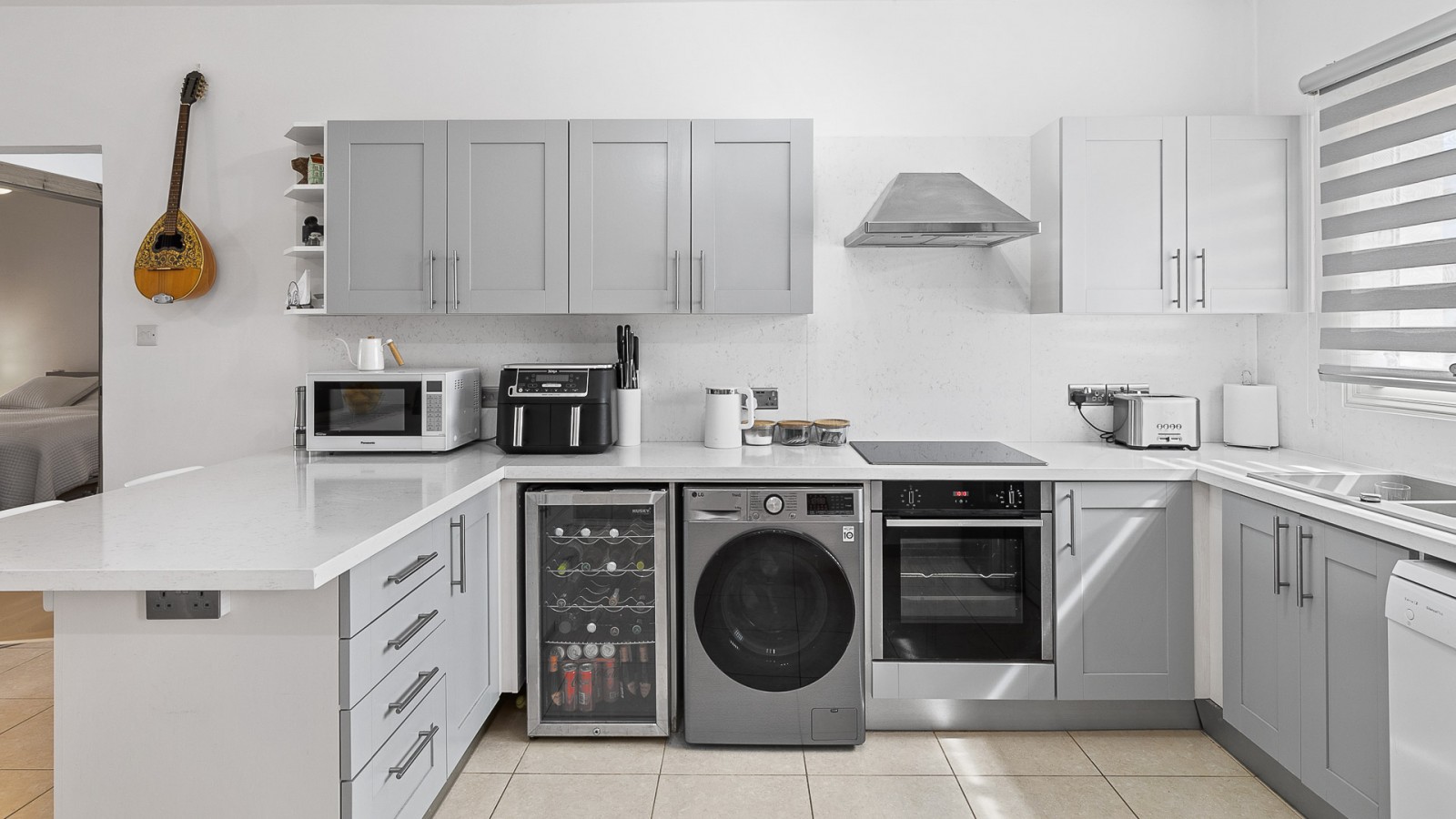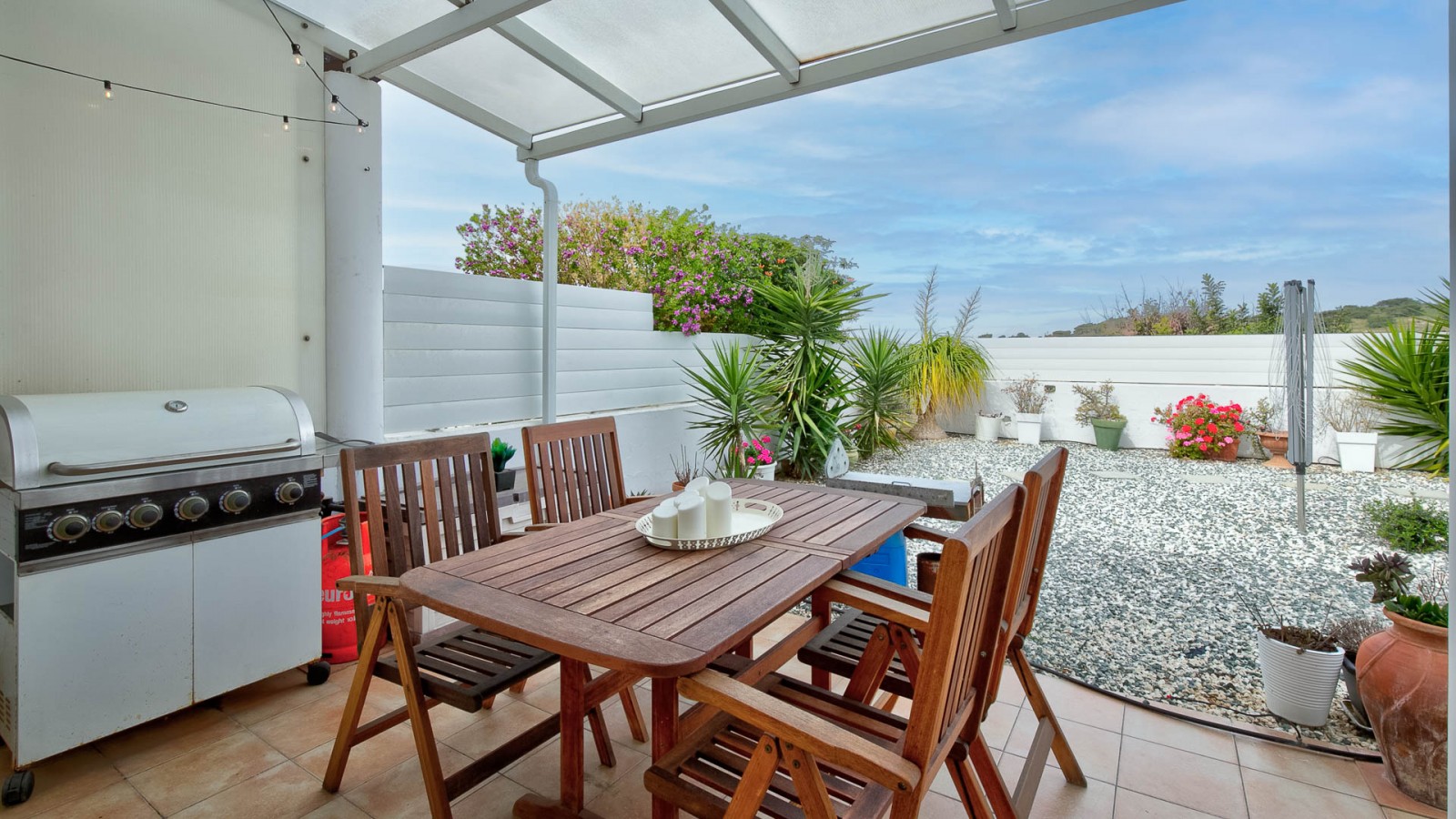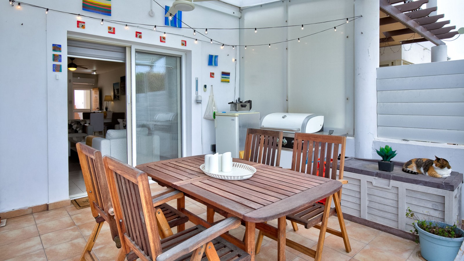 This stunning 2 bedroom ground floor apartment located on a quiet street at the top of Pissouri Village. Pissouri Heights is a smart development of well maintained, high quality, spacious homes with allocated parking and large private gardens for the ground floor apartments. This home has been especially well presented by its discerning Owners. You enter into a small hall space which then expands into the large open plan living area. A fully fitted, modern kitchen with breakfast bar, is located to your right with all fitted, modern appliances for today’s modern home. Through your large living space, you access the garden via patio doors out to a covered area and a low maintenance garden space. The two bedrooms are sleek and smart with sliding wardrobe doors and modern zebra blinds and the newly renovated family bathroom is a good size serving both bedrooms. From the main bedroom a covered terrace has been closed in to create a suite. This useful space can be utilised as an office, gym space or, as now, a cosy relaxing, reading space to unwind.