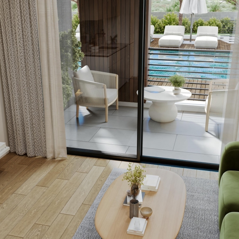 Situated in one of Limassol’s most rapidly developing and up-and-coming areas, puts you right at the doorstep of the city’s future. A short distance away is the world-class City of Dreams Mediterranean Resort & Casino, where entertainment, fine dining, and leisure converge. Nearby, MY MALL offers endless opportunities for shopping and dining, making it easy to find everything you need just minutes from your door. With excellent schools, the vast golf resort, Limassol Greens, and convenient access to the city centre and the bustling Limassol Marina, the location offers the perfect blend of suburban living and urban convenience – an ideal place to call home as this exciting neighbourhood continues to grow. The project can be described as a haven of modern living, designed to offer both style and serenity. Nestled within two sleek, three-story buildings, this exclusive residential development features a carefully curated selection of 24 two-bedroom and 23 one-bedroom apartments. Each home is a testament to contemporary design, with spacious, light-filled interiors that flow seamlessly onto private balconies, creating the perfect blend of indoor-outdoor living. Picture yourself starting your mornings with a refreshing dip in the large communal pool, surrounded by beautifully landscaped gardens, or working out in the fully equipped gym before heading off to your day’s activities. From basement parking to expansive green spaces, every detail of the project has been crafted with your comfort and convenience in mind.