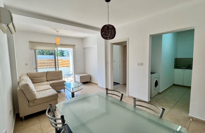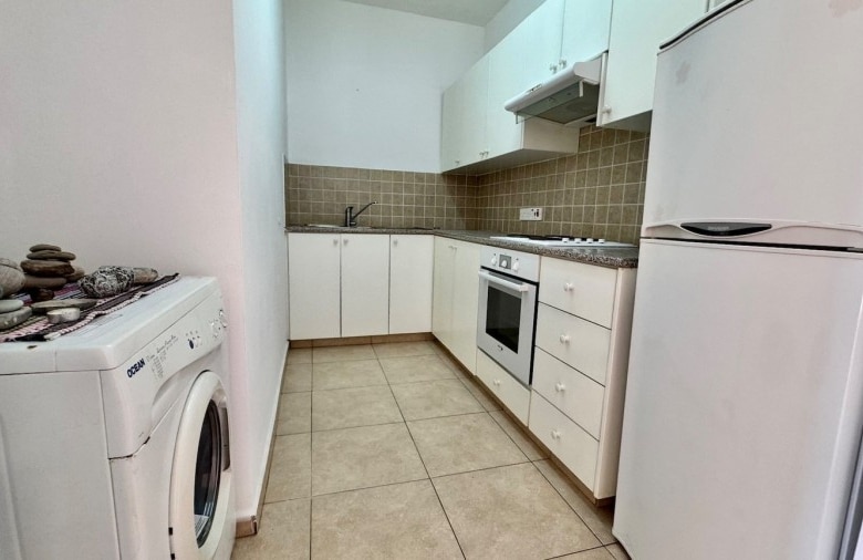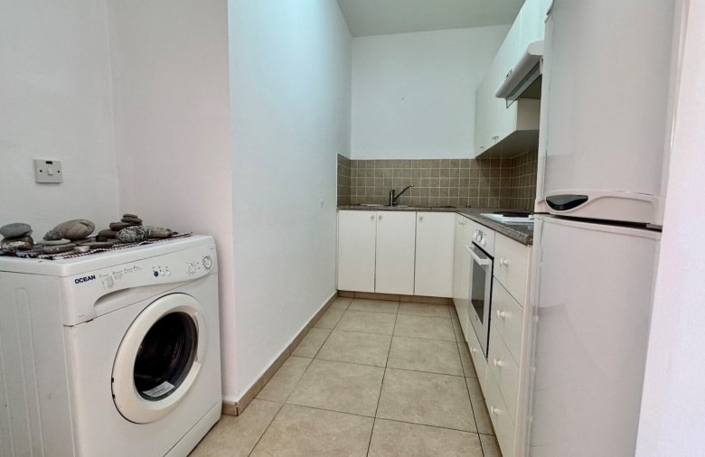 This 1-bedroom apartment is ideally located in the heart of Peyia village, just a short stroll—less than a minute—from local bars, restaurants, and the nearest bus stop. Situated on the first floor of the building, the apartment is accessible via both stairs and a lift. Due to its elevated hillside position, it uniquely benefits from a private, concreted rear garden of approximately 25m², offering some sea view—despite being on the first floor. As you enter the apartment, you’ll find the kitchen conveniently positioned to the right. The space opens into a bright and airy living and dining area, with patio doors that lead out to the garden—perfect for relaxing or entertaining. The apartment also features a double bedroom with fitted wardrobes and a well-appointed family bathroom.
