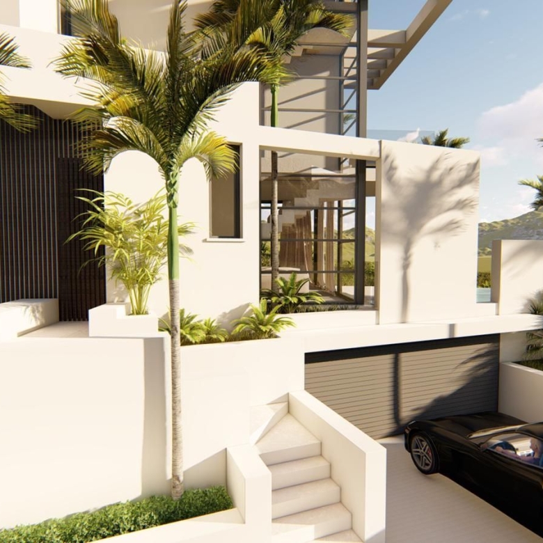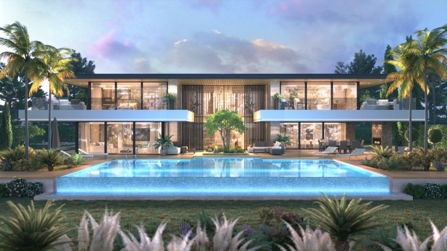 • Spectacular Views: Panoramic outlook over the golf course, framing the landscape and surrounded by mountains.