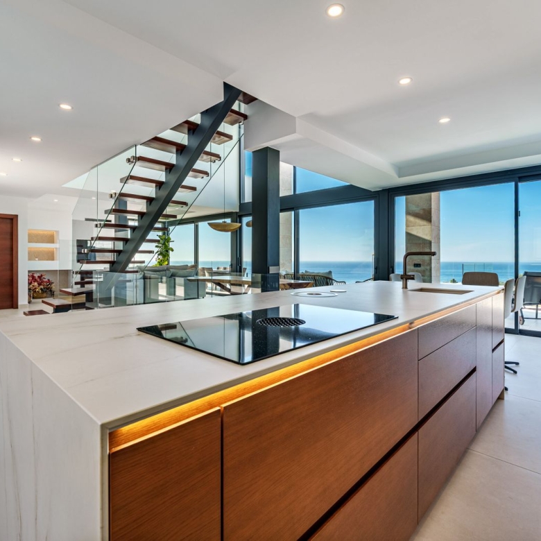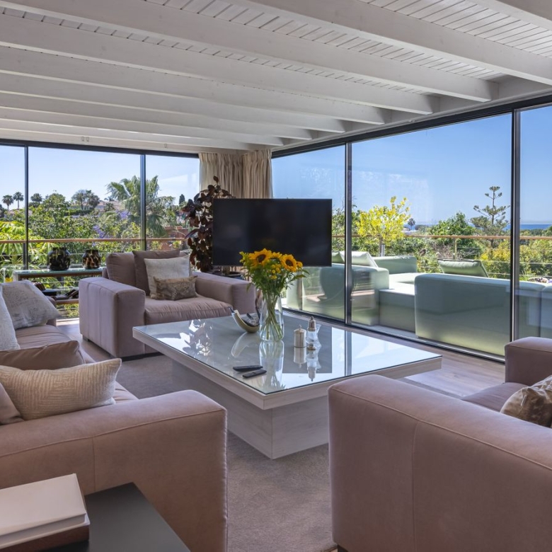 • Open‑Plan Living: Spacious lounge-dining area flows onto a double terrace—currently used as an extended lounge/BBQ dining space—with glass curtains and blinds for year-round enjoyment and privacy.