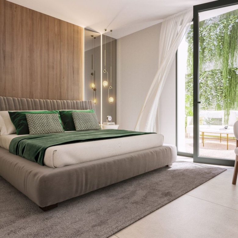 At the same ground floor level an indoor parking is included as well as a second one at minus 1 level.