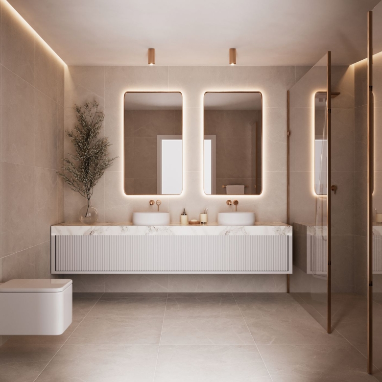 The master bedroom has its own en-suite bathroom with bathtub and the second bedroom has a full family bathroom next to it. Both bedrooms have fitted wardrobes and there is marble floors throughout the entire house.