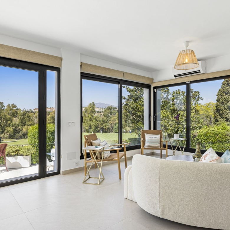 In this small gated community of only 18 apartments we have this beautiful, frontline golf, 2 bed 2 bath ground floor, south west facing apartment in Estepona Golf. 40m2 private garden, peaceful environment and only 200m from the clubhouse.