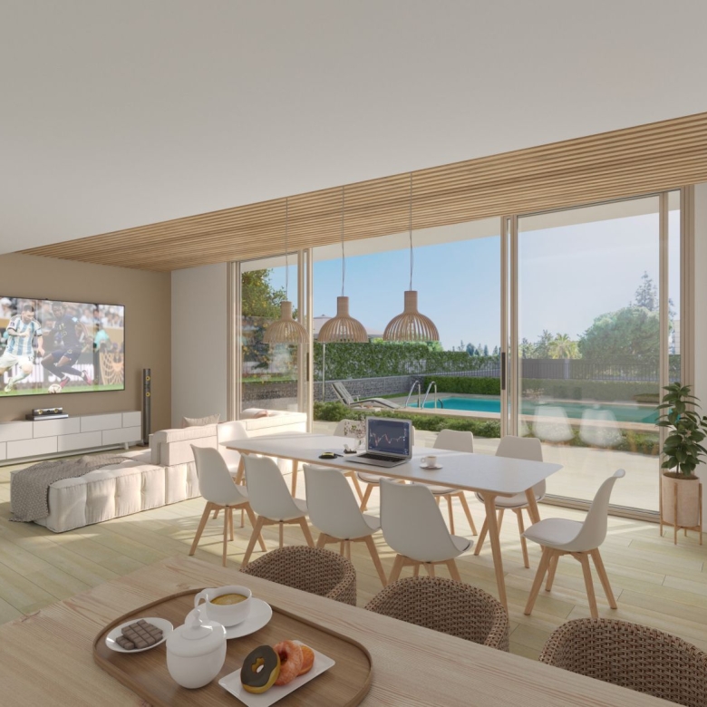 We've also added a rendering showing how the home could look with a slight change to the living room, bedrooms, kitchen, and patio.