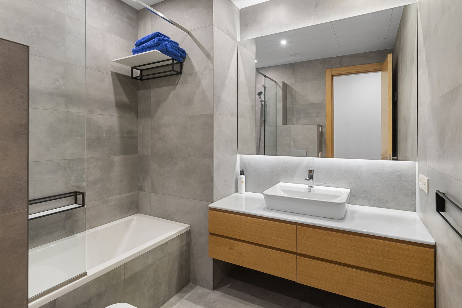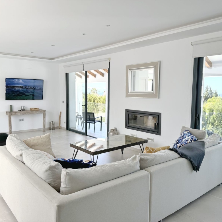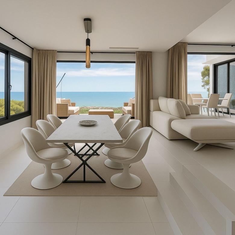 Discover refined coastal living in this fully refurbished 3-bedroom, 2-bathroom ground floor apartment, offering a harmonious blend of style, comfort, and prime location. Enjoy breath taking mountain views from two generous terraces, including a main terrace enclosed with glass curtains—perfect for relaxing or entertaining in any season while overlooking the pool and landscaped gardens.