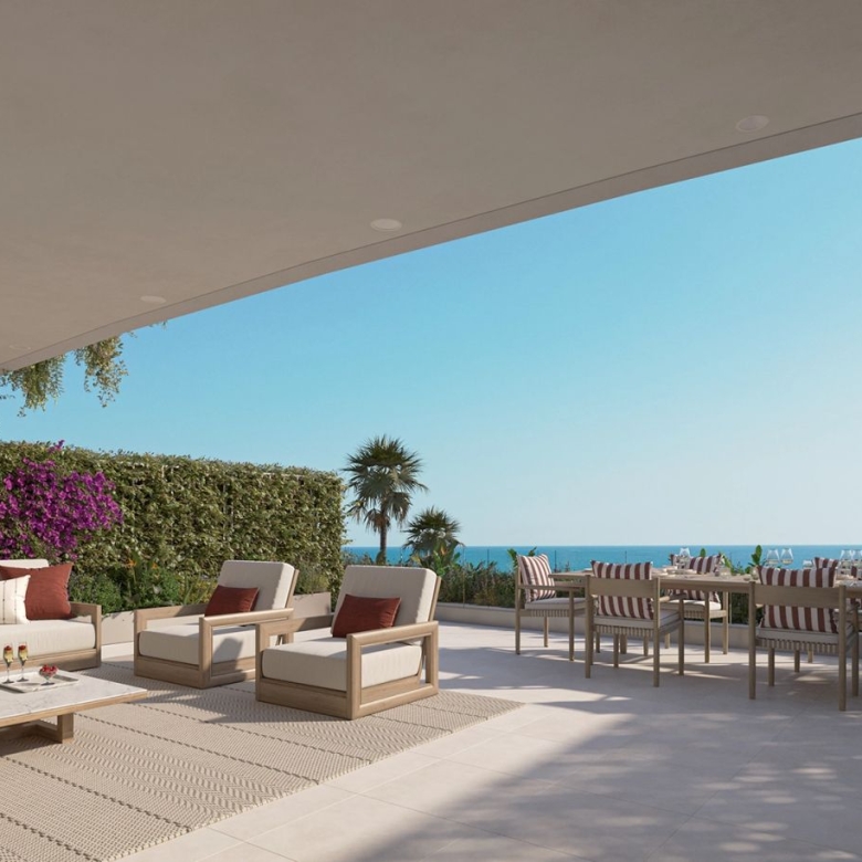 a 2 bedroom one bathroom ground floor apartment with beautiful sea views from a private large terrace.
