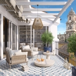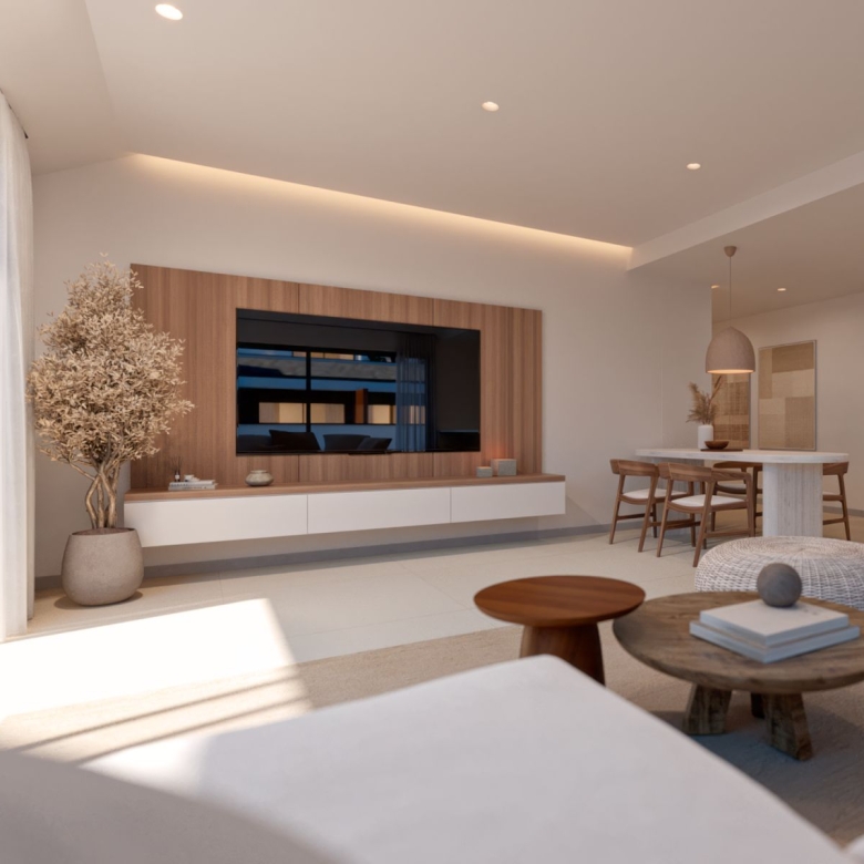 Stepping out through french doors leads to a large, south facing sunny terrace. There are beautiful views over the community and beyond to the Mediterranean Sea. This is a perfect spot for dinning or simply enjoying our perfect all year climate.