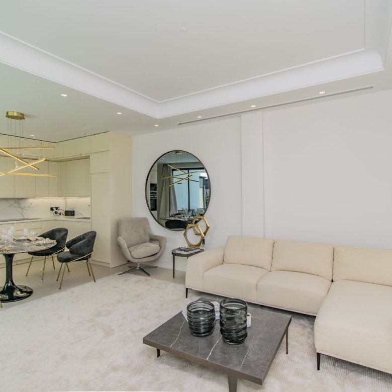 The apartment features a bright and spacious layout, with a generous living area that opens onto a large terrace where you can relax and enjoy the uninterrupted scenery. A second terrace at the rear captures the afternoon sun, offering a tranquil and private outdoor space. The kitchen is fully equipped and includes a separate laundry room. Both bedrooms are well-sized with ample built-in wardrobes, and the master includes an en-suite bathroom. Cream marble floors, stylish marble bathrooms, electric blinds, hot and cold air conditioning, and an intelligent home system add to the refined finish of the property.