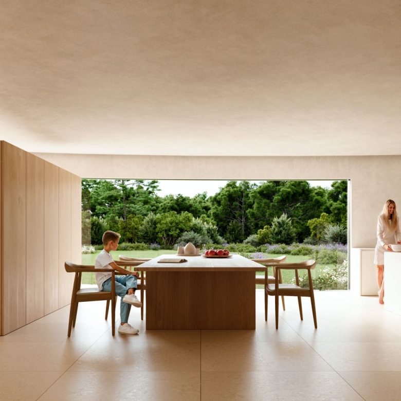 Air conditioning provides hot and cold air, and hot water is provided by solar panels.