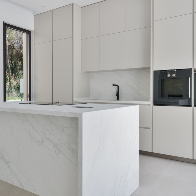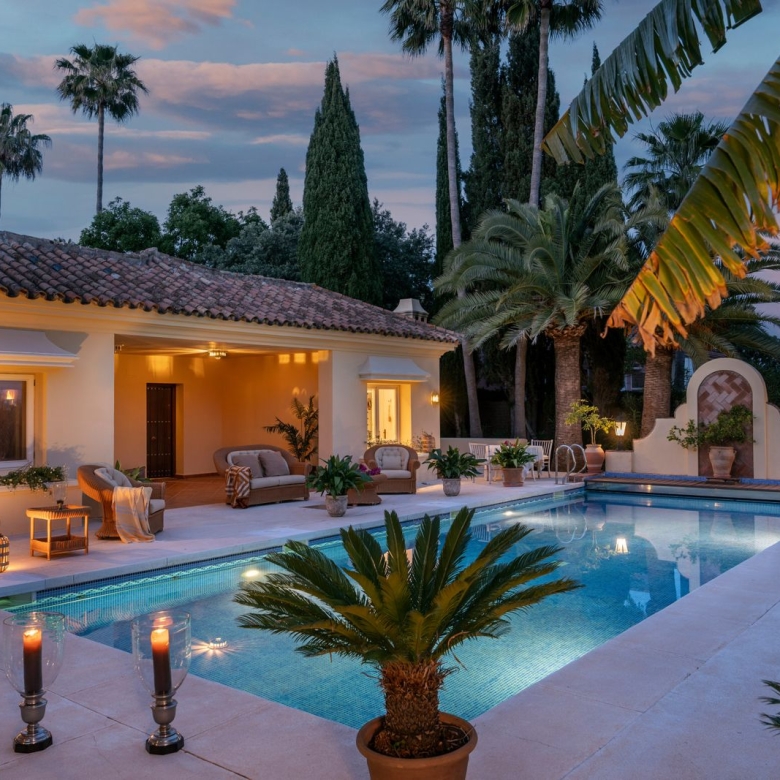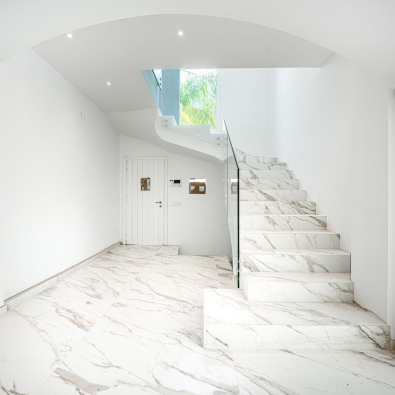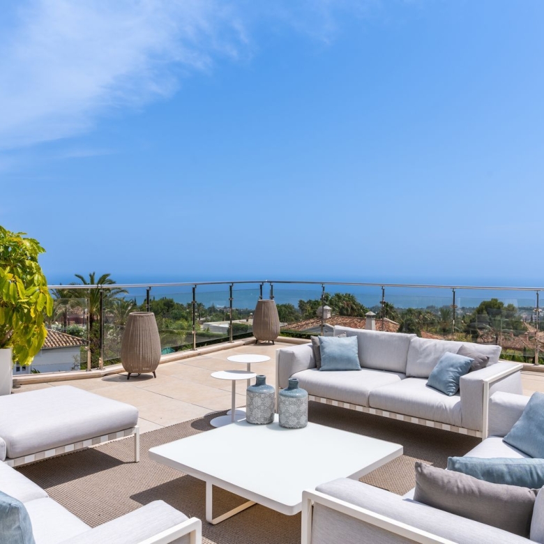The home comprises three elegant en-suite bedrooms. The expansive master suite includes a walk-in wardrobe and opens onto a private south-facing terrace. A unique highlight: the third bedroom overlooks the Puente Romano Tennis Club, offering a front-row view of world-class matches.