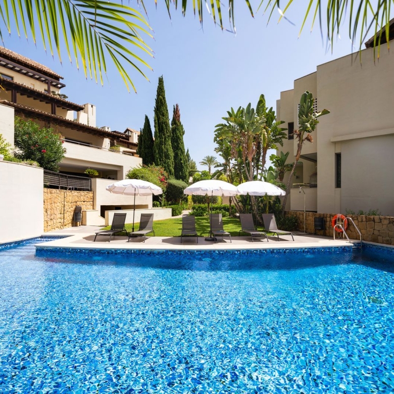This exceptional 2-bedroom, 2-bathroom + guest toilet ground-floor apartment presents a rare opportunity to own a refined residence in one of Marbella’s most desirable urbanizations—just a mile from the town center on the way to Sierra Blanca. Ideally located along the exclusive Golden Mile, the apartment offers a perfect blend of modern comfort, timeless design, and a prime location, ideal for year-round living or as a stylish holiday home.