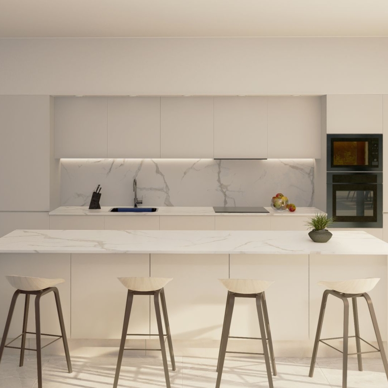 the apartment is large enough to swap the kitchen into an additional bedroom and put in the lounge area to make open plan,
