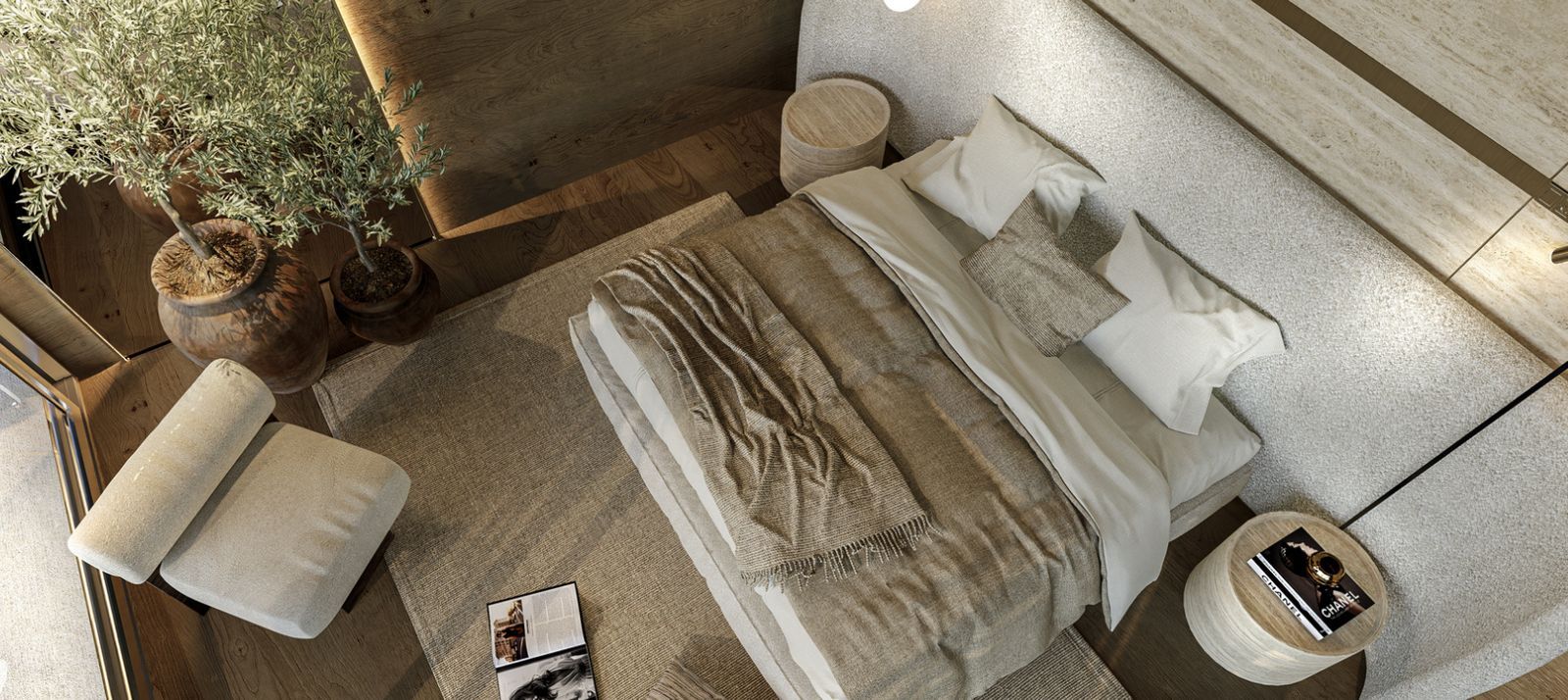 Walking in, you are met with stunning sea views stretching out to the horizon. The living space opens straight onto a large private terrace, making it easy to enjoy that indoor-outdoor lifestyle, whether you're winding down or hosting friends. The sound of the waves in the background just adds to the calm.