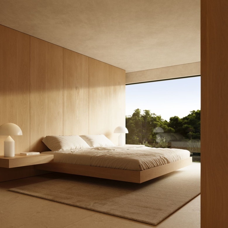 The main bedroom includes a spacious walk-in wardrobe—ideal for keeping your clothes and accessories well organised. A hidden laundry area means everything stays tidy and clutter-free, keeping the clean lines and modern feel intact.