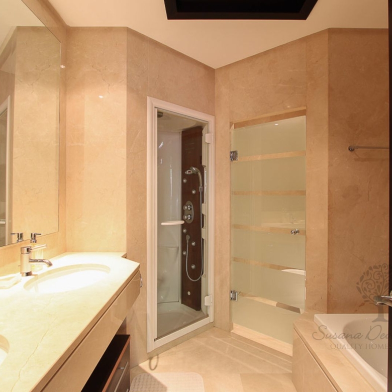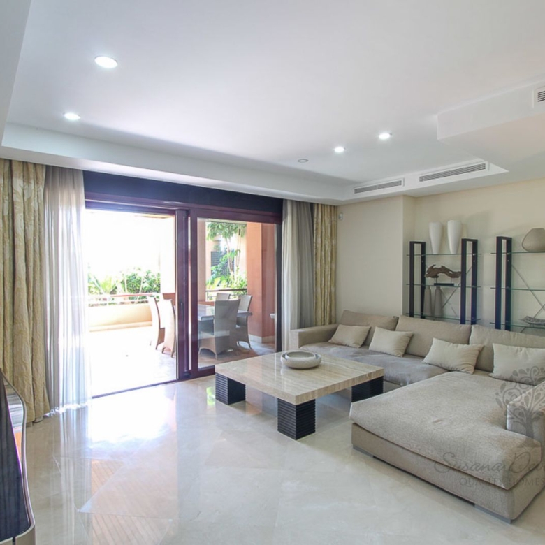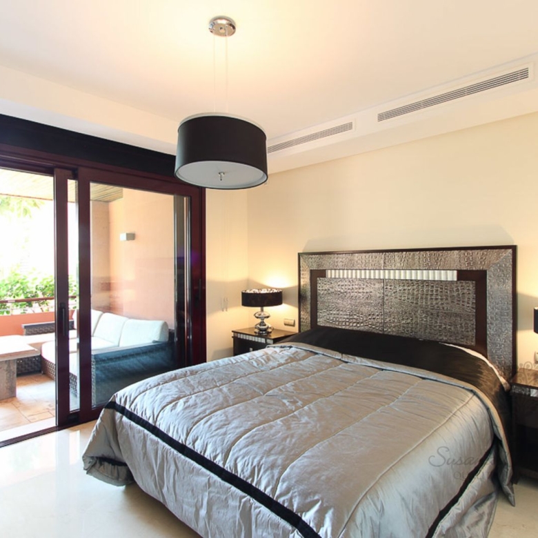 This beautiful ground floor apartment is situated in a private luxurious gated urbanization Malibu, set next to Gran Hotel Guadalpin Banus, near glamorous Puerto Banus, with 24 hour security, sophisticated system of intruder alarms installed on fence surrounding the development compound, top-quality automatic hydraulic lifts and automatic garage doors, concierge services, large salt water lagoon type outdoor swimming pool with solarium, amazing landscaped tropical gardens, heated indoor pool, a fully equipped fitness area with two Jacuzzis, sauna and gym. This residential community carries a reputation for quality, refined elegance and glamour and is loved by the celebrities and respectable business people.