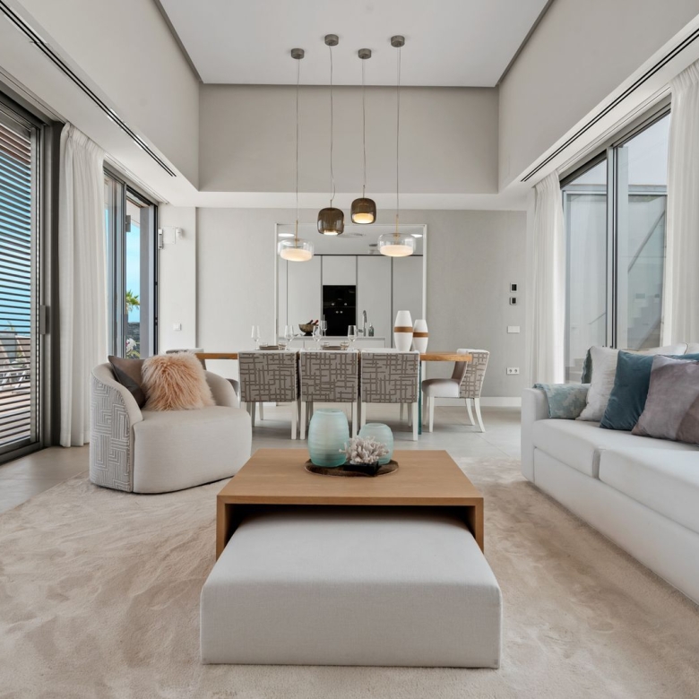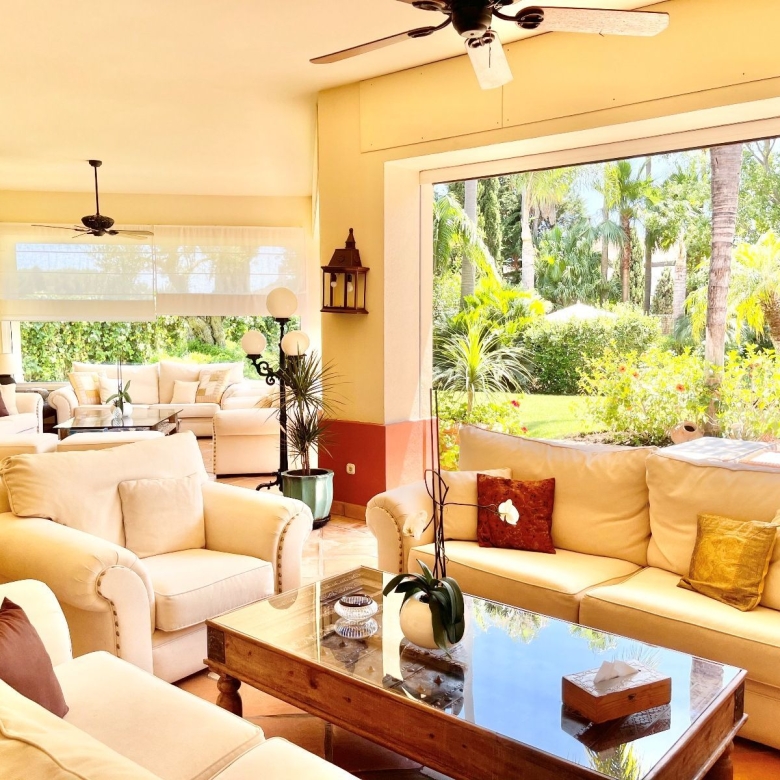 Located within the exclusive 5 star resort Puente Romano in the heart of the Golden Mile of Marbella, this unique apartment sports bespoke interiors combined with the highest quality standards. Effortless indoor-outdoor living with an expansive terrace overlooking the magical Japanese garden and only steps away from the golden beaches of Marbella. The property has a large south-east facing terrace area with direct access to the communal pool and the beach just a few steps away. Offering an open plan layout, a modern kitchen custom designed with oak cabinetry and integrated Gaggenau appliances. Complete with 3 sizeable bedrooms, each one exhibiting a refined contemporary design complete with its private ensuite bathroom. Private parking and storage room included.