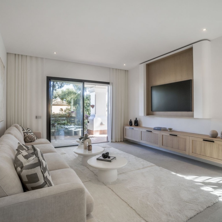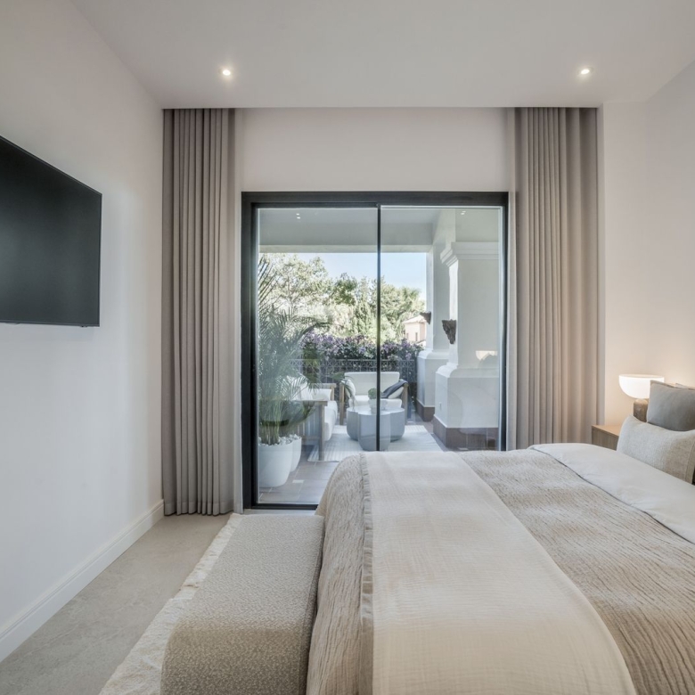 Introducing, Altos Reales 1 a newly renovated 3 bedroom and 3 bathroom ground floor apartment in the exclusive community of Altos Reales in Sierra Blanca. Where every aspect of this apartment has been carefully designed to create a unique living experience: elegant floors, high-ceiling, contemporary custom wood carpentry and wardrobes, natural fabrics and textures, an open designer kitchen with Miele appliances.
