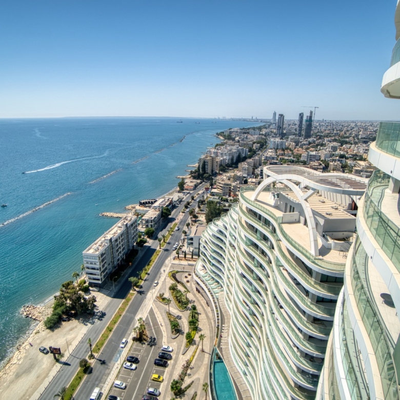 Sea front luxurious apartment in Limassol tourist area offering uninterrupted sea views from spacious verandas and full height glazing seamlessly merges the interior with the exterior, adding to the immense sense of space. Located in the heart of the popular 17 km-long promenade along the coastline, project will be built on a large plot of 34,000 sq m, stretched across the 170 meters of the land’s sea frontage, allowing magnificent sea views from ground to top floor. Situated close to the most prestigious residential areas and five-star hotels, the development is aiming to transform Limassol’s seafront. The project will be surrounded with beautiful, lush landscaping, and will have extensive parking available, including allocated parking for residents.